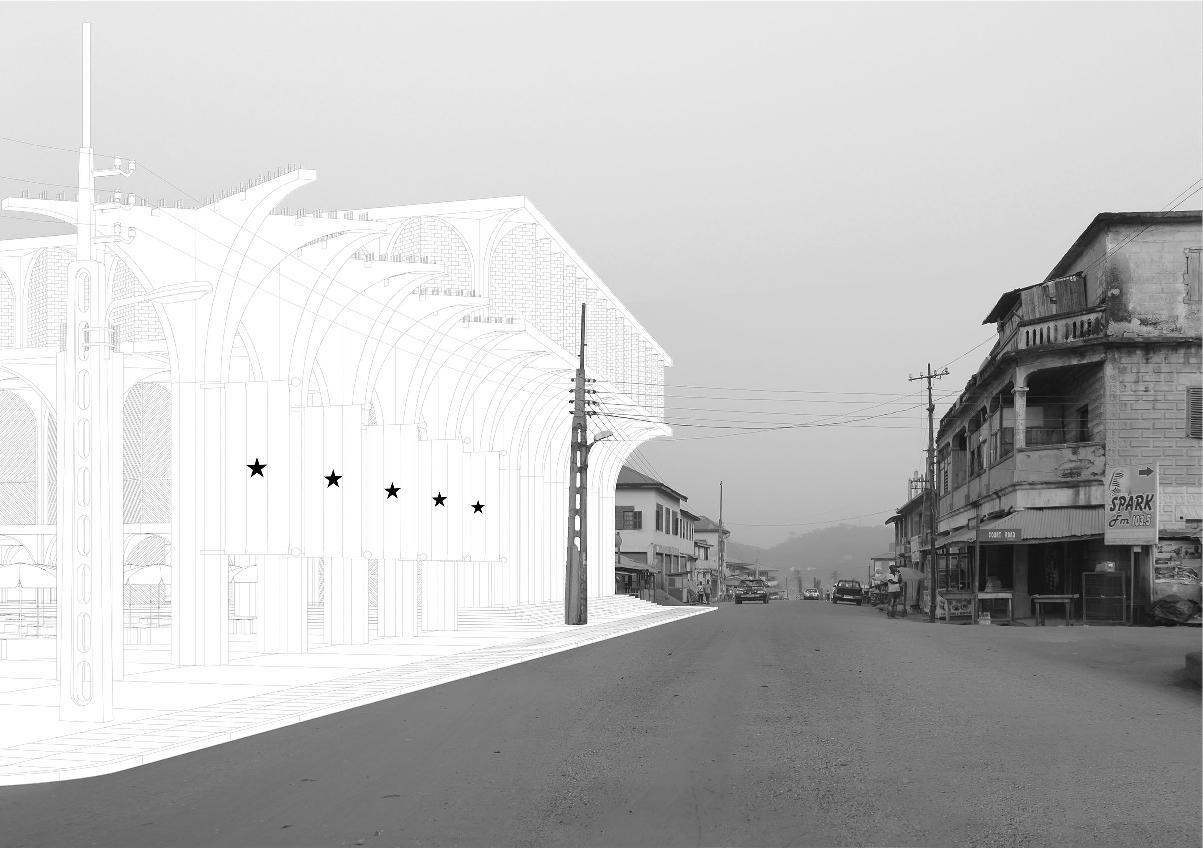 The said meta-narrative sets out a framework to establish a series of alternate equatorial fantasies. The following ambition was to tackle a specific theme of the over-arching research which resonated from the historical events that shaped today’s tropical canon. This undertaking a view of architecture through the lens of oppression that is consistent with the colonial exploits preceding and proceeding Ghana’s independence in 1957. Currently, the illegal gold mining industry in the relatively peaceful West-African nation recalls the prospecting spirit of the early colonialists. However, instead of a conquering European power, it is now the opportunistic Chinese that profit from the abundance of Africa’s natural resources.