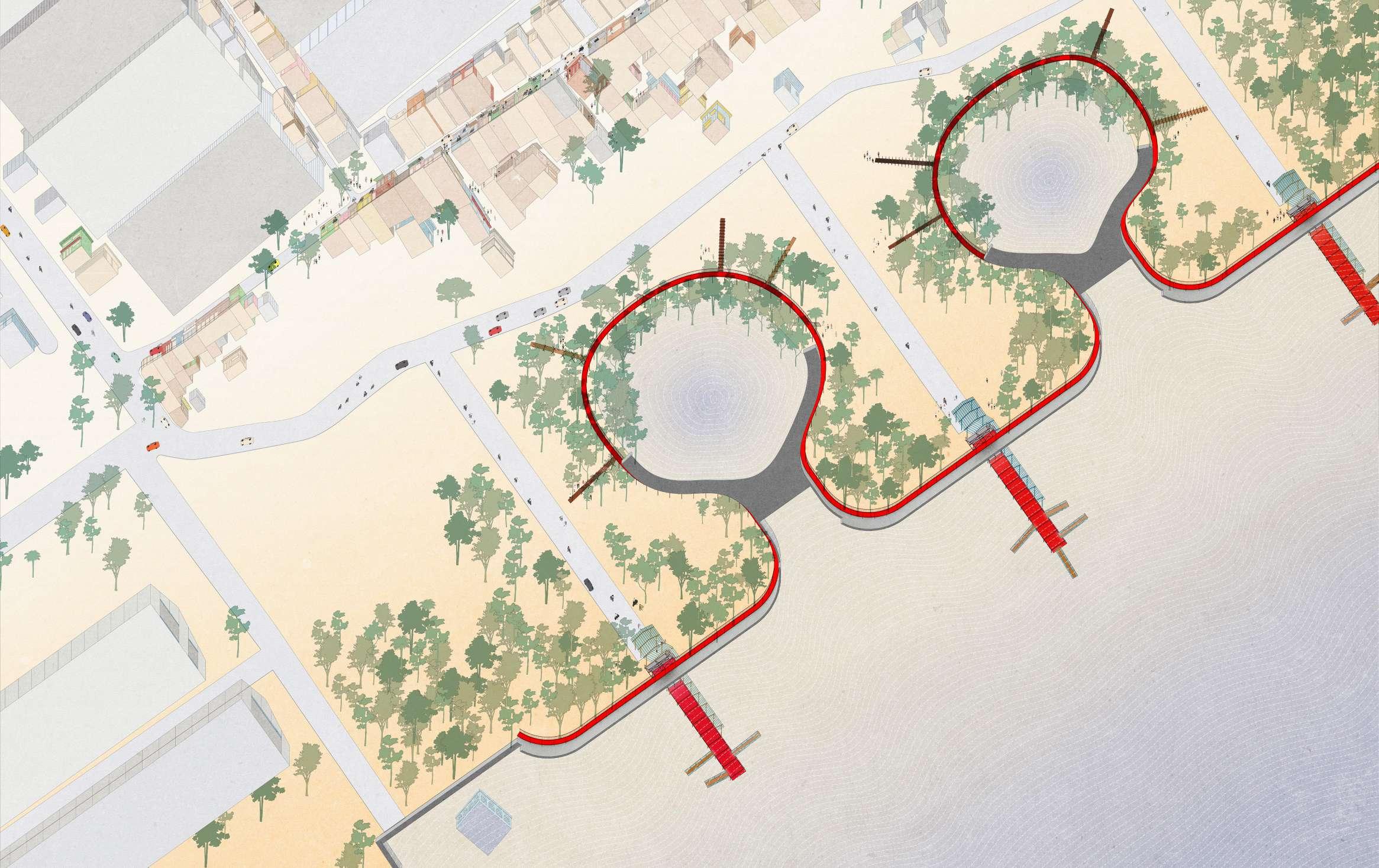 This research asserts that fostering cross-pollination between urban typologies is essential to establish continuity within Jakarta’s unique local and plural culture. By viewing flood infrastructure as an opportunity for infrastructural urbanism, where infrastructure is a core component of urban development rather than just a platform, this research advocates for an anti-fragile and democratic approach to urbanism. It embraces the local and plural culture, using the shared duress of the tide as a catalyst for propagating architectural interventions. It does so by designating three encompassing sites in North Jakarta as laboratories for the larger city.