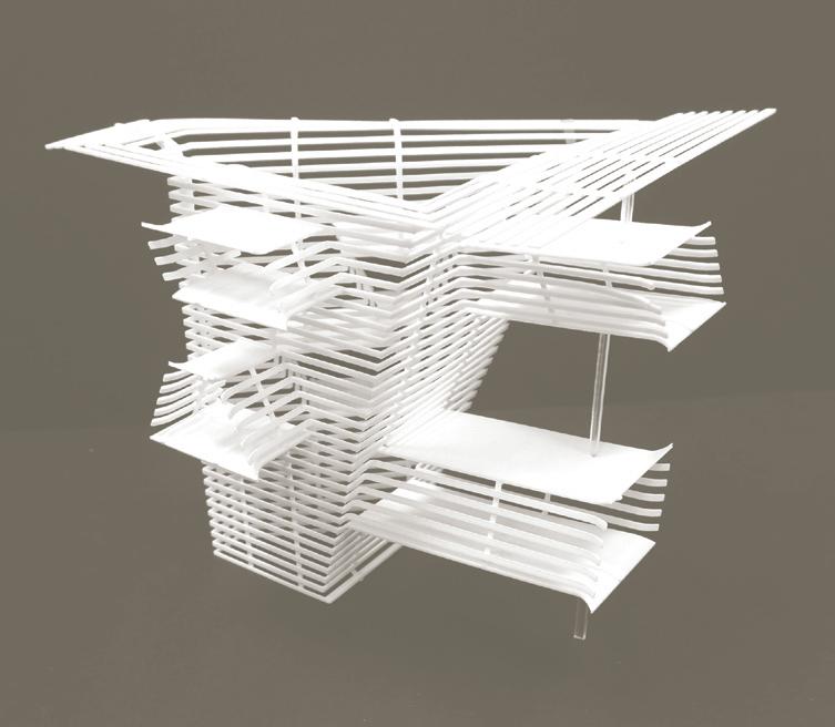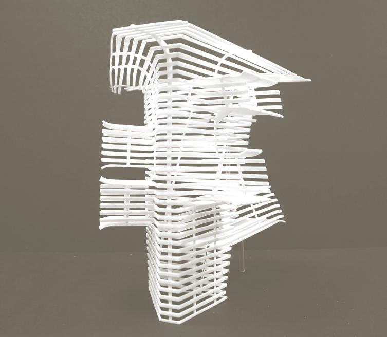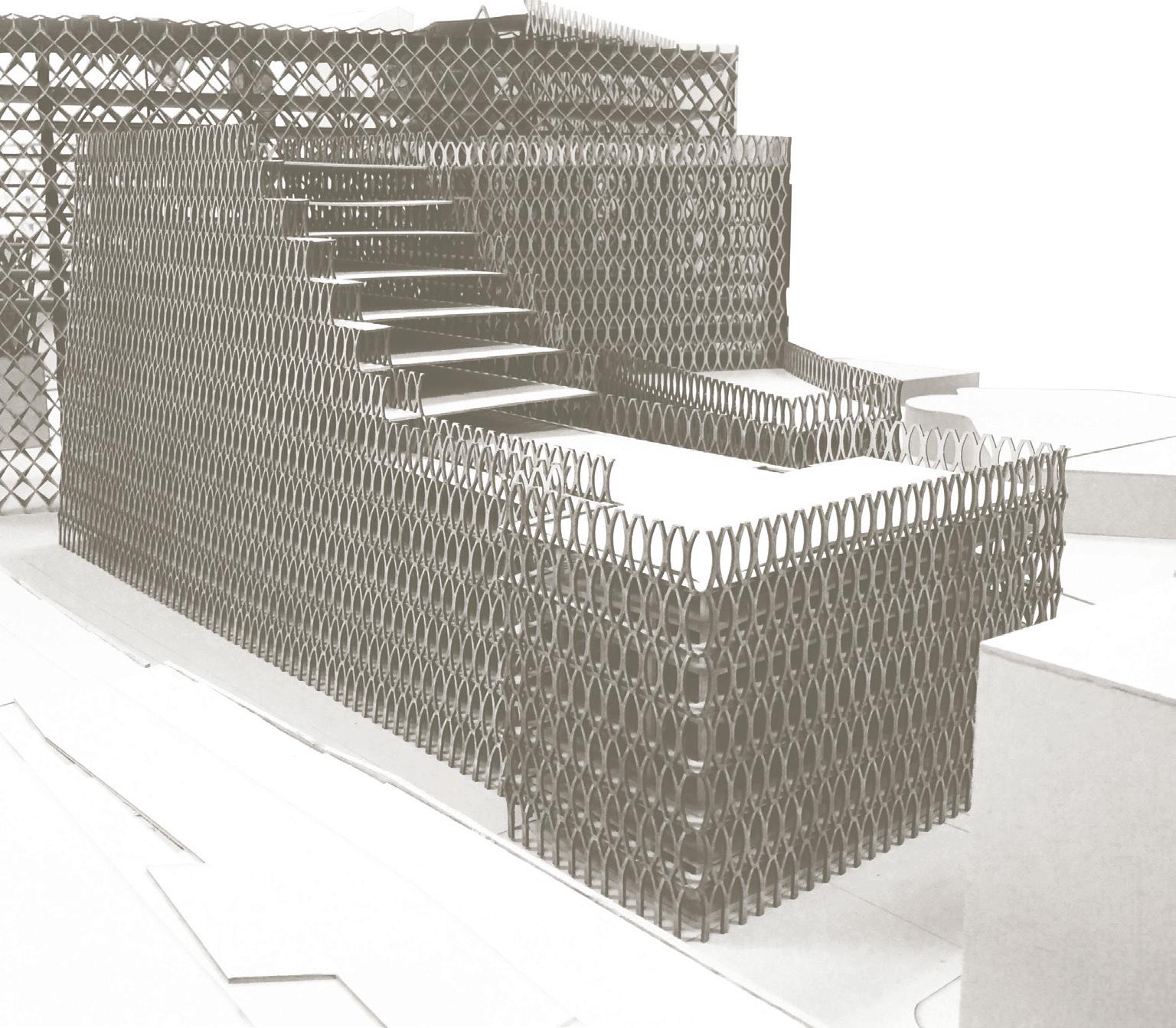 3. The design iterations at the scale of architecture were developed through large-scale physical models as a primary tool of research. Digital models allowed for simulation and visualization, while 3D printed and laser engraved analogue models provided material manifestations for discussion and observation. Photography of the physical models was compared with digital simulations, and feedback on the performance of the sun-shading effect and a sense of the atmosphere were verified through the physical and spatial qualities manifest in the analogue models. This method produces immediate feedback on the design and overcomes the limitations of long hours needed for digital simulations to act on more complicated designs approaches. Digital fabrication equipment was heavily utilised in the model making process. 3D printers are useful in producing models that involve 3D curve geometry while laser engraver machines were effective in producing small, intricate and repetitive parts that are used in the large physical models. The 3D printers used were Formiga P100 and Makerbot Replicator 2 while the laser engravers machines used were Epilog Legend 36EXT.