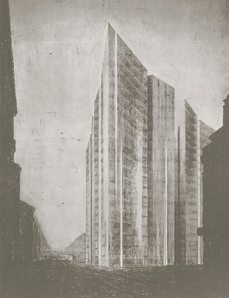 Structural elevations are predicated on locating columns along the building perimeter as a component of the elevation. By doing so, the internal floor plate is left open for flexible interior partitioning. The added benefits allows for utilizing the structural member as a sun shading device to improve the envelope’s performance. Often, the structural member is rendered in a finer profile that double functions as an ornamental pattern, as found in the Wing On Life building or The American Cement building. As in “Thick Blocks”, the surface articulation of the elevation produces a dramatic optical quality while being embedded with structural logic. In short, structural elevations expediently resolve the primary functions of architecture; to carry gravitational loads, to provide for climatic separation, to accommodate performance and functional requirements between the interior and exterior, and to articulate a delightful play of function and ornament.
