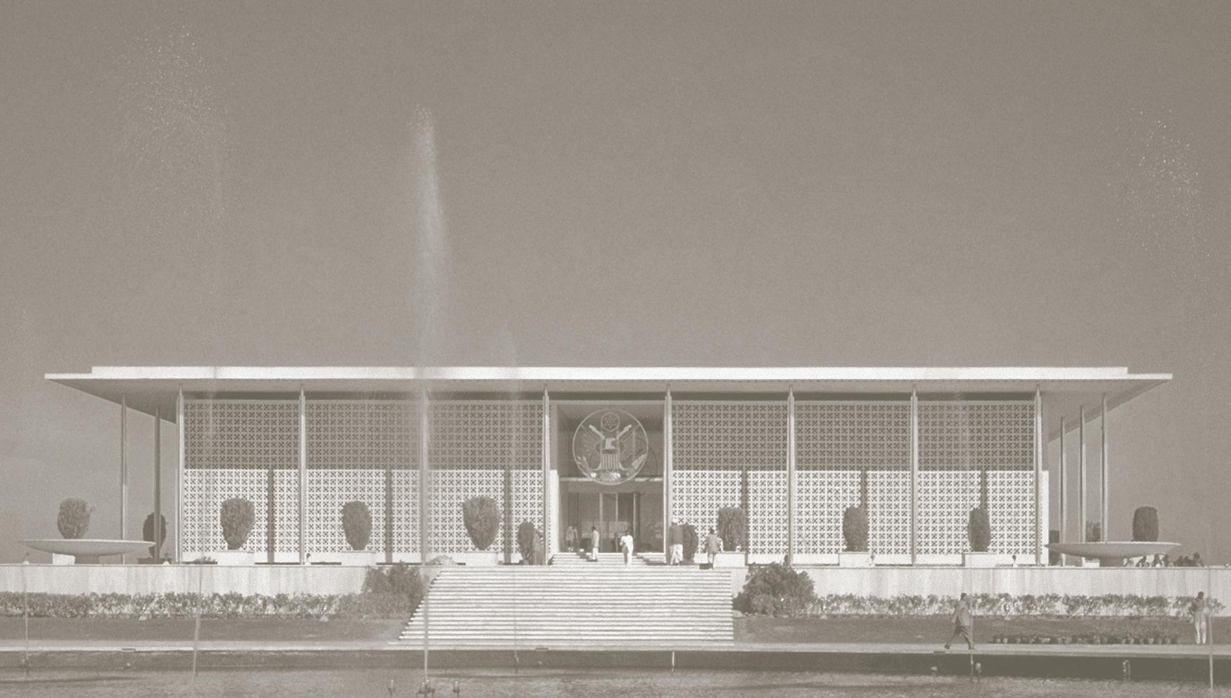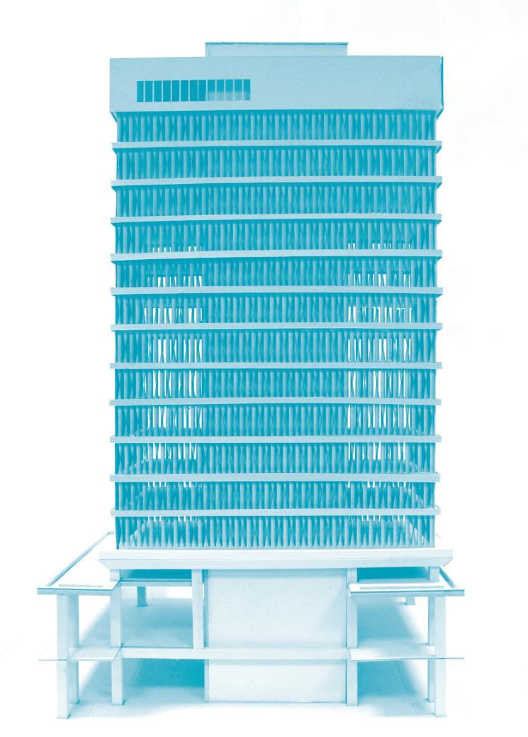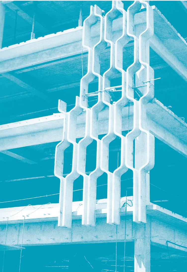 The importance of the elevation can be found in a fantastic collection of mid-century buildings that are rapidly being erased. They were produced at the advent of largescale air conditioning, where passivity and mechanical demands had equal sway, where atmospheric calibration was manifest through materials, not through mechanical conditioning alone. Lineages may be found in Singapore from the James Ferrie and Partners’ Wing On Life Building built in 1975, to the replaced AIA Building along Robinson Road by John Graham & Co. (1958), to the demolished US Embassy Building by Frederick E. Emmo & A. Quincy Jones, with James Ferrie and Partners (1961). In the general architectural discourse of the time, several buildings suggest a manner of merging environmental, structural and spatial concerns into an efficient and performative envelope. Namely, Edward Durell Stones’ US Embassy in New Delhi (1955), Vladimir Ossipoff’s IBM Building in Hawaii (1962) and the Curtis and Davis’ United Steelworkers building (albeit temperately misplaced in Pittsburgh Pennsylvania in 1963). Similarly, multiple buildings within the Asia Pacific region from as early as the 1940s provide lessons that prioritize the elevation as a site of architectural invention. The repertoire spans a variety of scales, depths and opacity: from the big heavy opaque elevation found in Leandro Locsin’s Cultural Centre of the Philippines (1969), or Hassan Vogel’s delicate Sequis Center in Jakarta (1978), to the early fantastic concrete work at the Golconde Dormitory in Pondicherry designed by architects George Nakashima and Antonin Raymond (1946). Each of these works prioritizes architecture itself as a site of technological and spatial invention that deals with the climate appropriately, effectively and poetically.