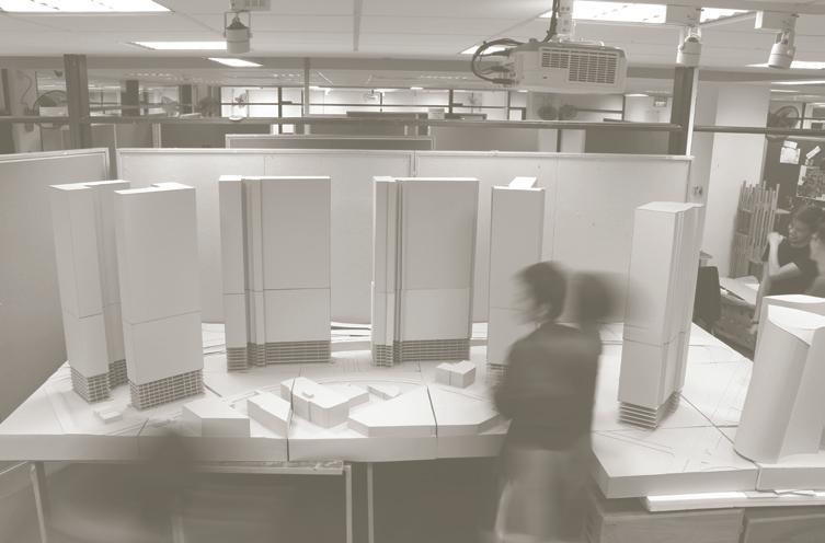 The courtyard, traditionally, directs light and breeze into a deep floor plan. Combined with supporting climatic data the urban courtyard is deployed strategically in response to urban flows, circulation, ventilation, shade and protection from monsoon rain. The collective ground floor for these courtyard spaces are designed with different qualities- from a lush garden, narrow tapering courtyard, and canopy to atrium. On the urban scale, the courtyard allows construction of individual buildings to systematically and in isolation from one another. This phased approach focuses construction noise to limited areas across the site, rather than causing disruption throughout the site.