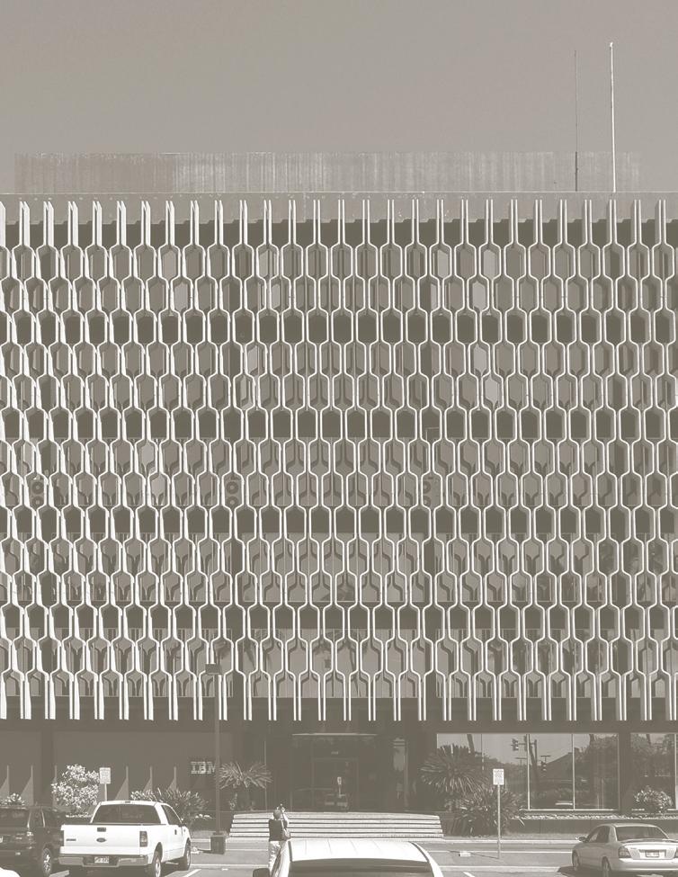 The American Cement Corporation headquarters utilizes reinforced concrete as the “the building material of the future” as a form of self-promotion, symbolic of the owners ambitions. The site is opposite MacArthur Park, just east of downtown Los Angeles. Together with DMJM, Edward Rothschild and Arthur Gilbert (building owners) specified the design of a column-free office space that was seismic compliant, column free cost competitive when compared with non-concrete structural systems and materials.