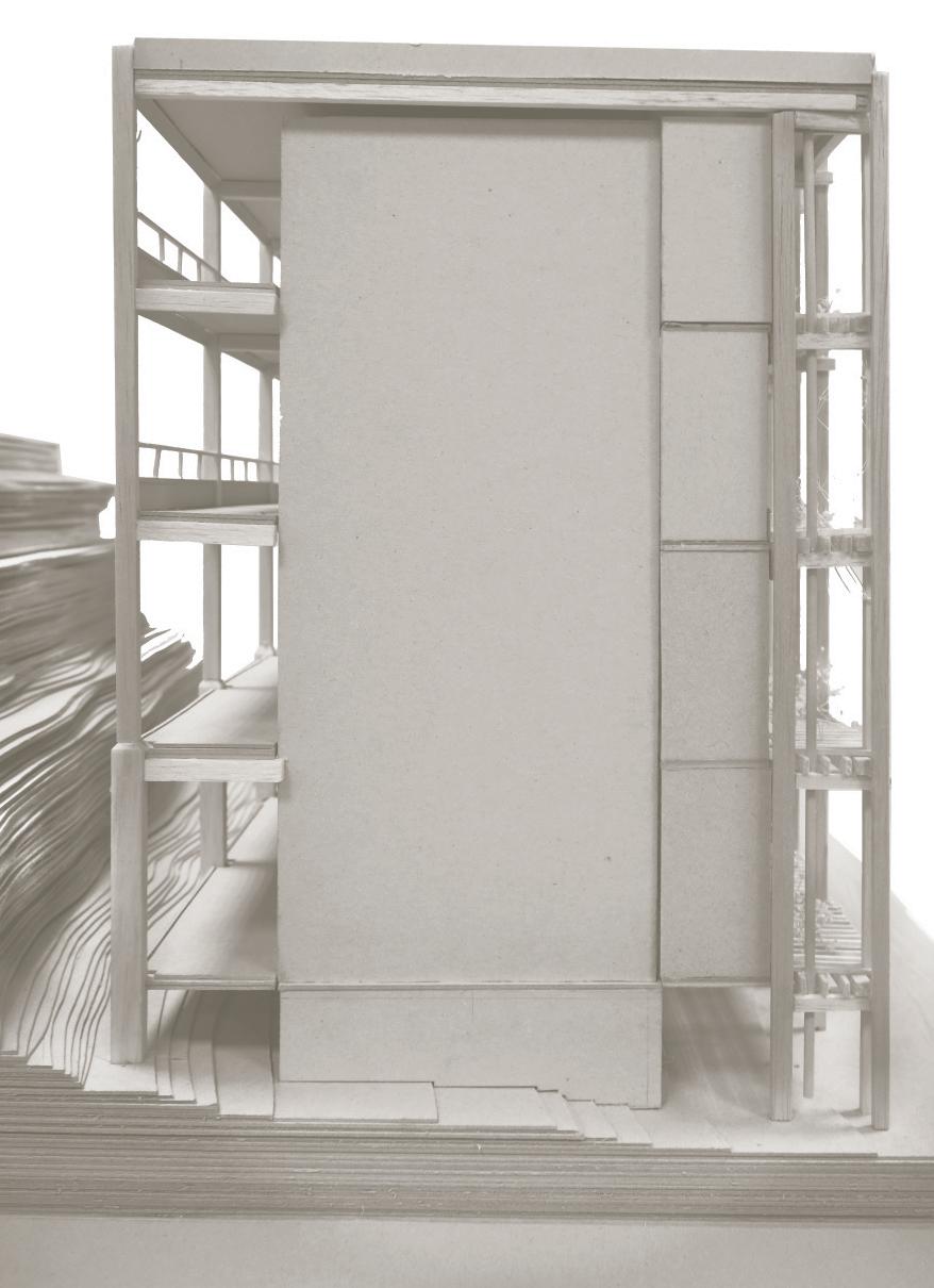 The new masses sitting lightly atop the existing Block 47 and 51 buildings are supported by the Structurally-Insulated-Panel (SIP) elevation that drapes over and hugs tightly around the existing building. The upper floors are supported by “waffle slabs” supported on both ends, like a series of tables stacked perfectly on each other. On the underbelly of the “waffle slabs” are a series of catenary vaults that taper out to a flat surface from the outer to the inner elevation. They serve both to provide lateral support and to diffuse light gently into the inner spaces. The incline of the vaults become progressively steep from the highest to the lowest floor, in response to the varying angle of incidence of sunlight.