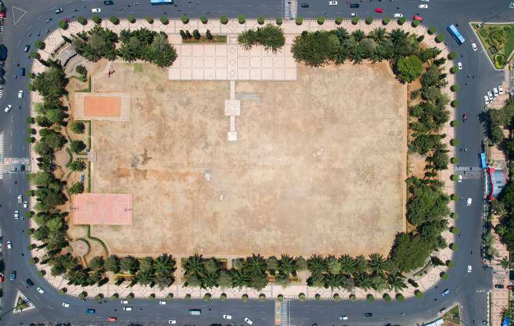 Founded in the 13th Century, the alun-alun is an open field located in front of a royal palace or a government institution.The fundamental concept of this space is that it positions itself to have a mosque on theWest, a market on the East and a royal palace on the South. Hence, there are religious, economical and political symbols that govern this space.The positions also provided a clear North-South and EastWest axis that is linked to the concept of macrocosm and microcosm. In addition, one of its defining characteristics is the placement of two particular trees in the middle of the open square.The canopy of the trees tries to resemble the shape of an umbrella that symbolizes protection by the royals for the people. However, due to the harsh climate and lack of shading, the alun-alun is only used when people are waiting to meet the royals, resulting in an empty field on most days. Commoners will not use this space freely as they feel intimidated by being on the grounds owned by someone with higher power.As such, the alun-alun eventually becomes a symbol of power for the royals.