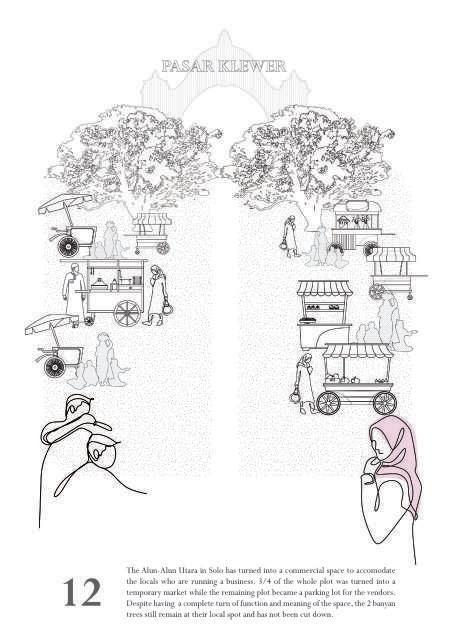The alun-alun in the three Javanese cities in Central Java have morphed and changed into different types of spaces. For instance, Yogyakarta, a state that is still ruled by a Sultan, maintained the alunalun as it is, making it a lasting historical model. On the other hand, the alun-alun in Semarang has been relocated to what is known as Simpang Lima. Today, it is referred as their new city centre located in the downtown area with a similar spatial organisation as the old alun-alun. As a result, the original model was abandoned and left undeveloped. It then became a space for a traditional market to grow due to its strategic location. Lastly, in the city of Surakarta, the alun-alun became a space for a temporary market, with a quadrant of the space being reserved as a parking space. From these examples, it is evident that the alun-alun in each city no longer hold the same level of importance like it used to. If anything, the model of Surakarta’s alun-alun being a temporary market is the result of a shift of meaning that merely recognises the alun-alun as a public open space with no specific meanings and functions. As such, it is allowed to function flexibly, regardless of users. This gives an opportunity for exploration about the relevance of the space today. In addition, it is also critical to define what the alun-alun is, in today’s context and time period.