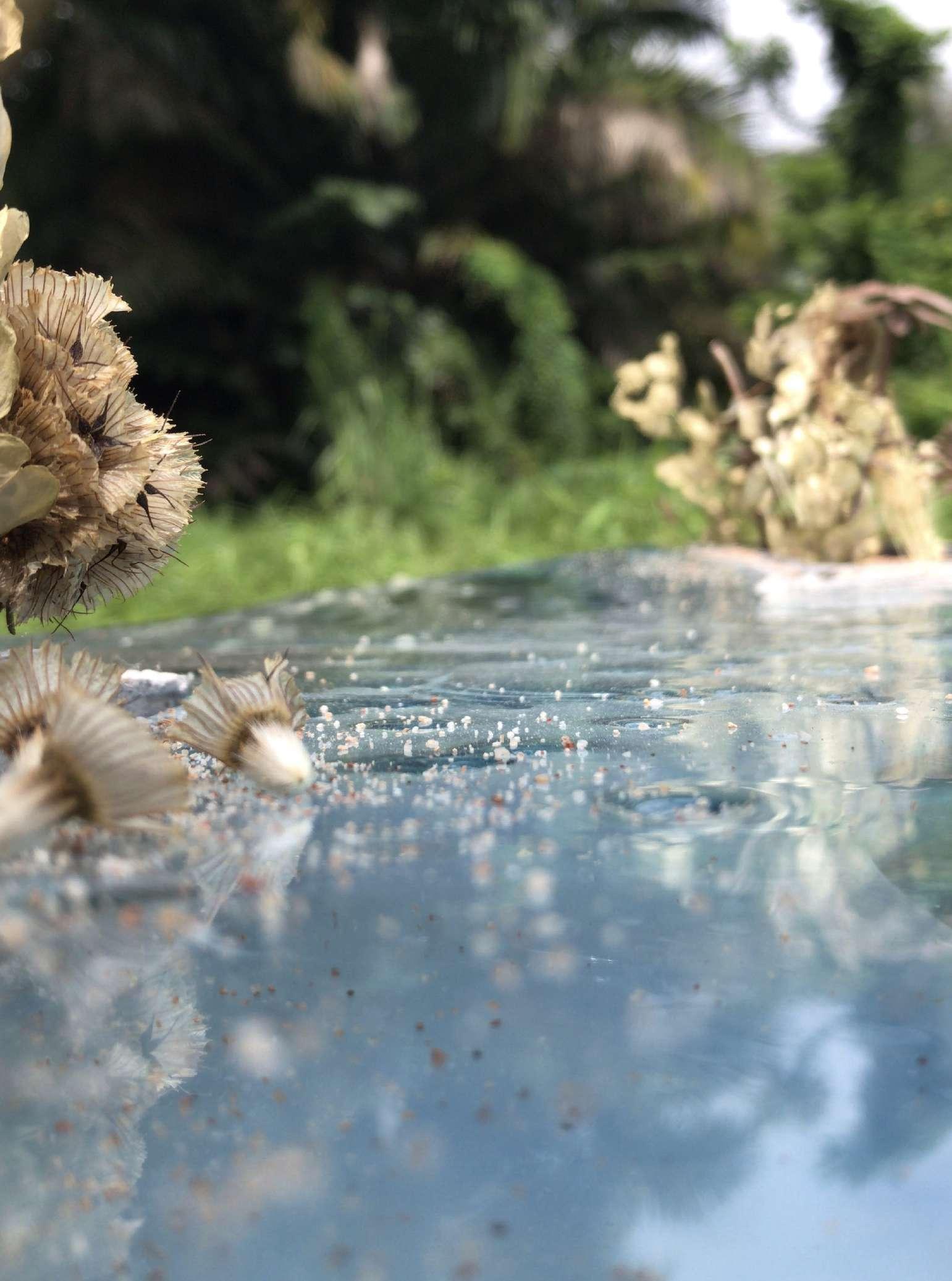 Constant interaction with the site and earth are established. The field of vision is trained at the surrounding crown of the earth while stationary - standing in front of the toilet sink, lazying down by the pool and leaning at the balcony.