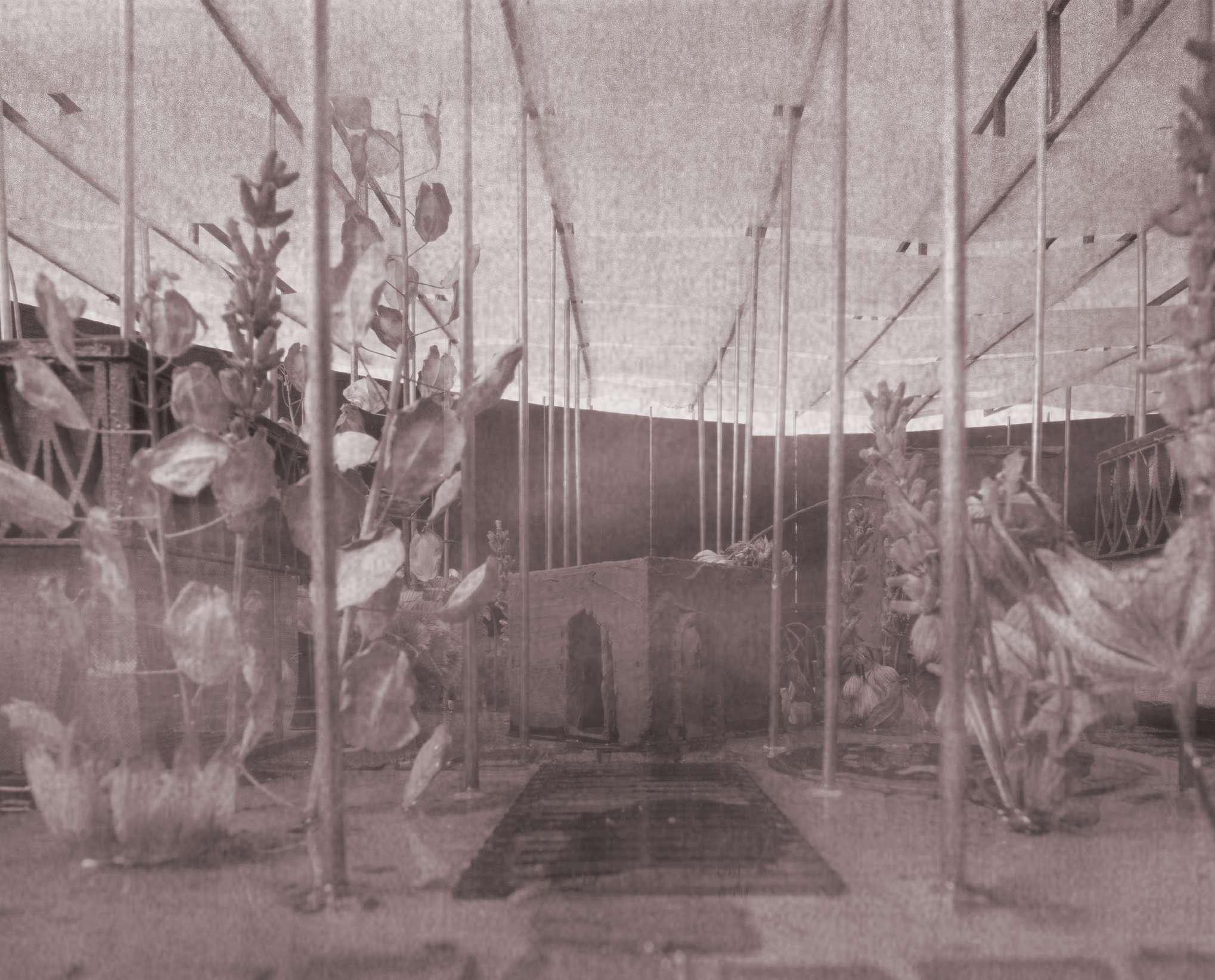20 metre high expressionless walls hugs a mass grove of Palms. Within the formal order of the raw concrete walls a wild overgrowth of palm trees defines the large expanse of a garden. Peaking above the wall edge, a tinge of palm leaves sways in the light breeze passing over head.