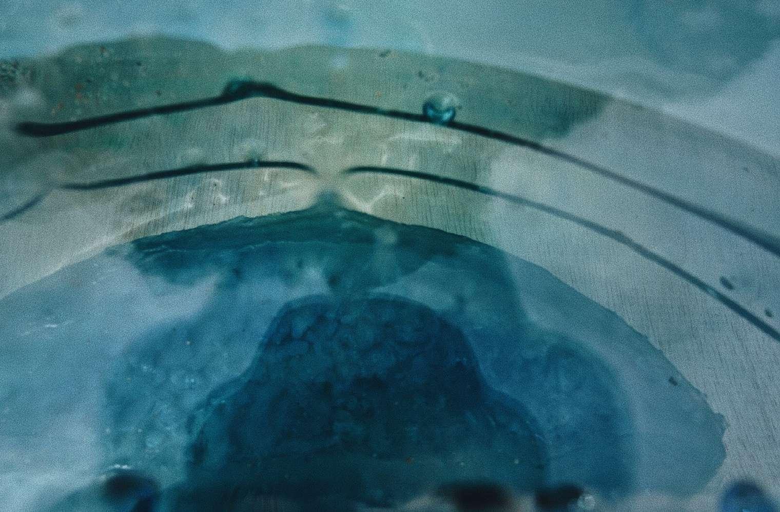 The warm summer sun shines through the pristine pool surface catching the caustics array from the kicked up sand beds.