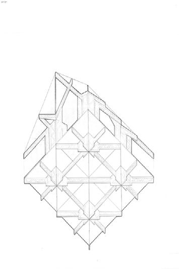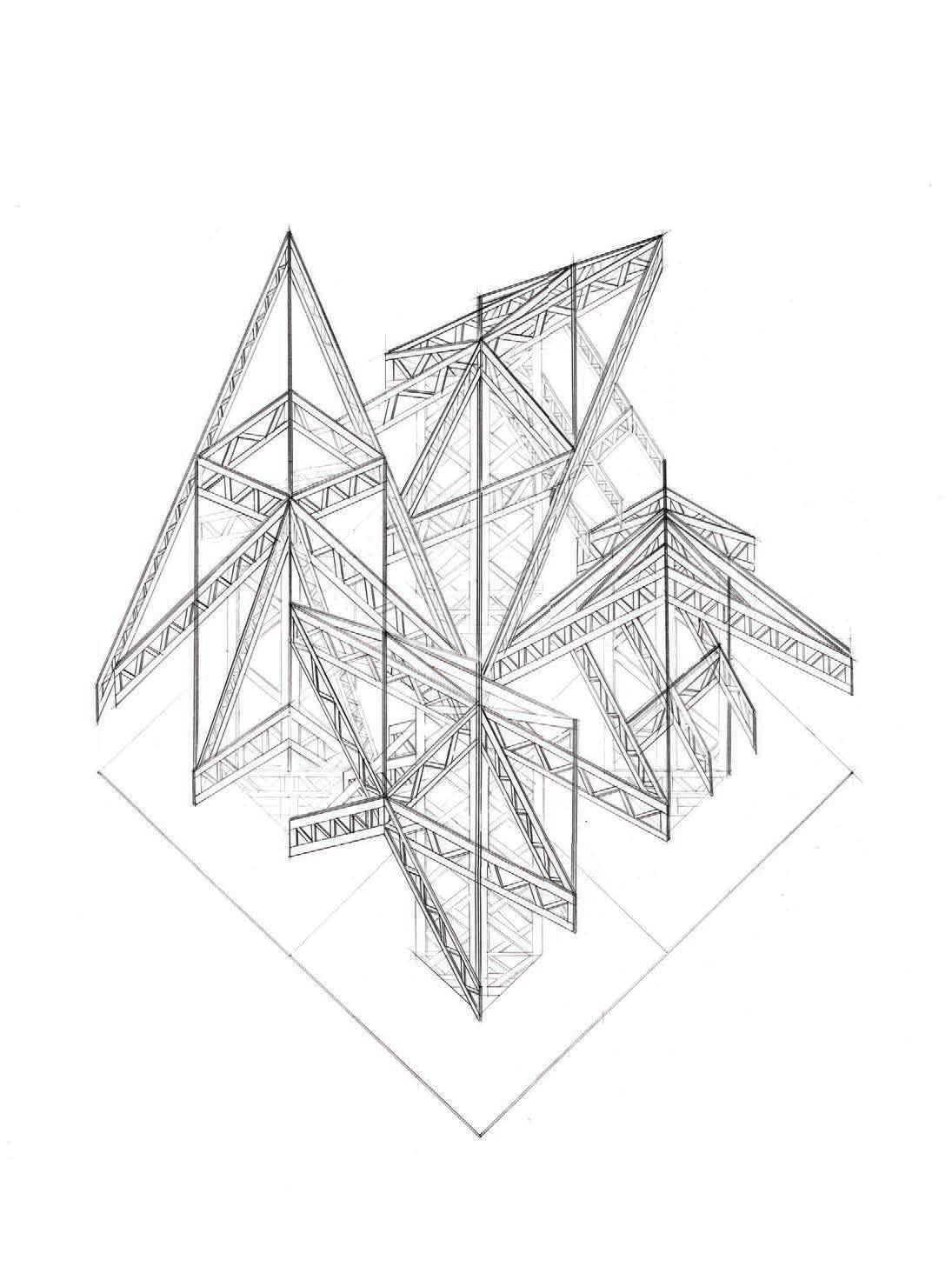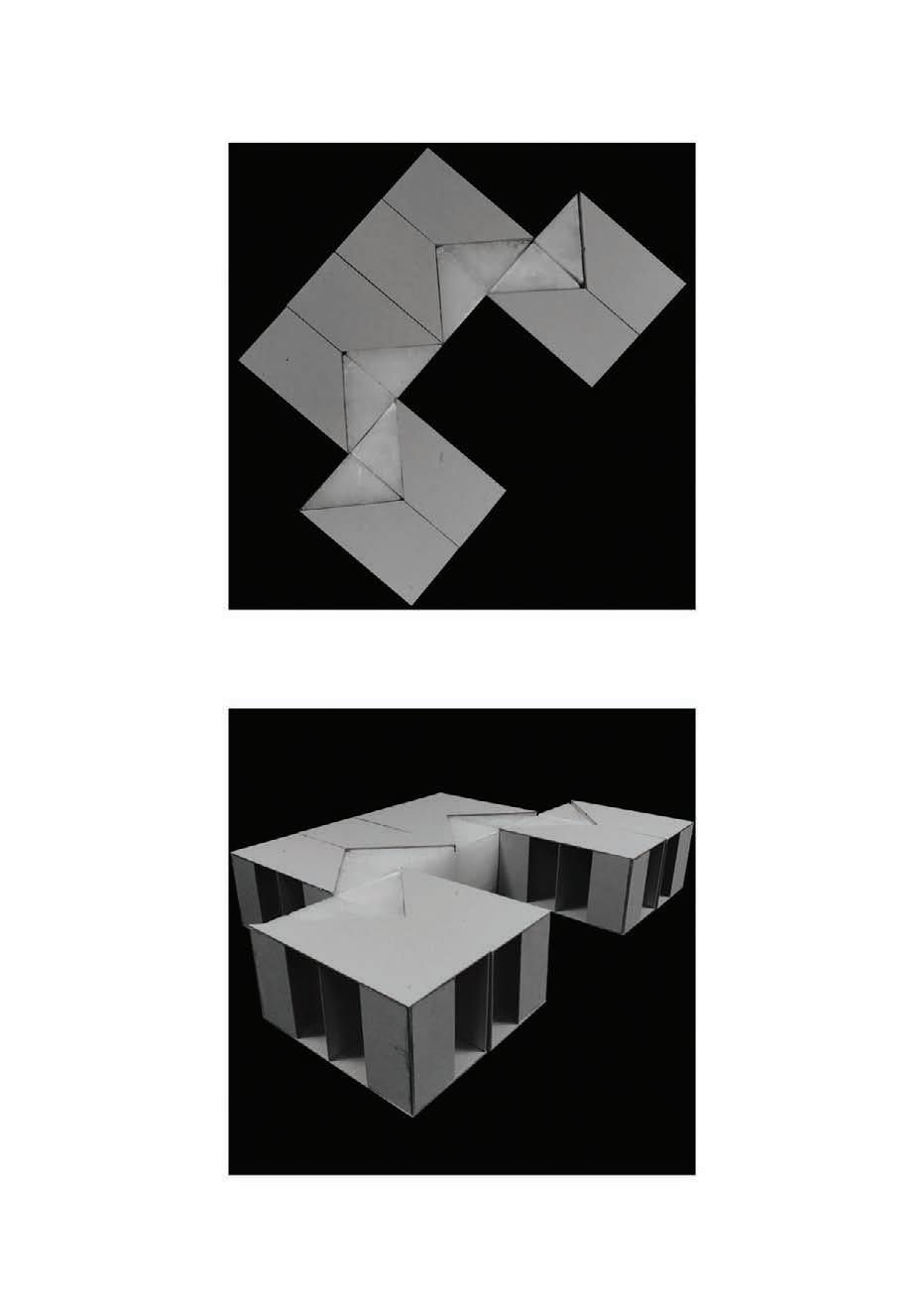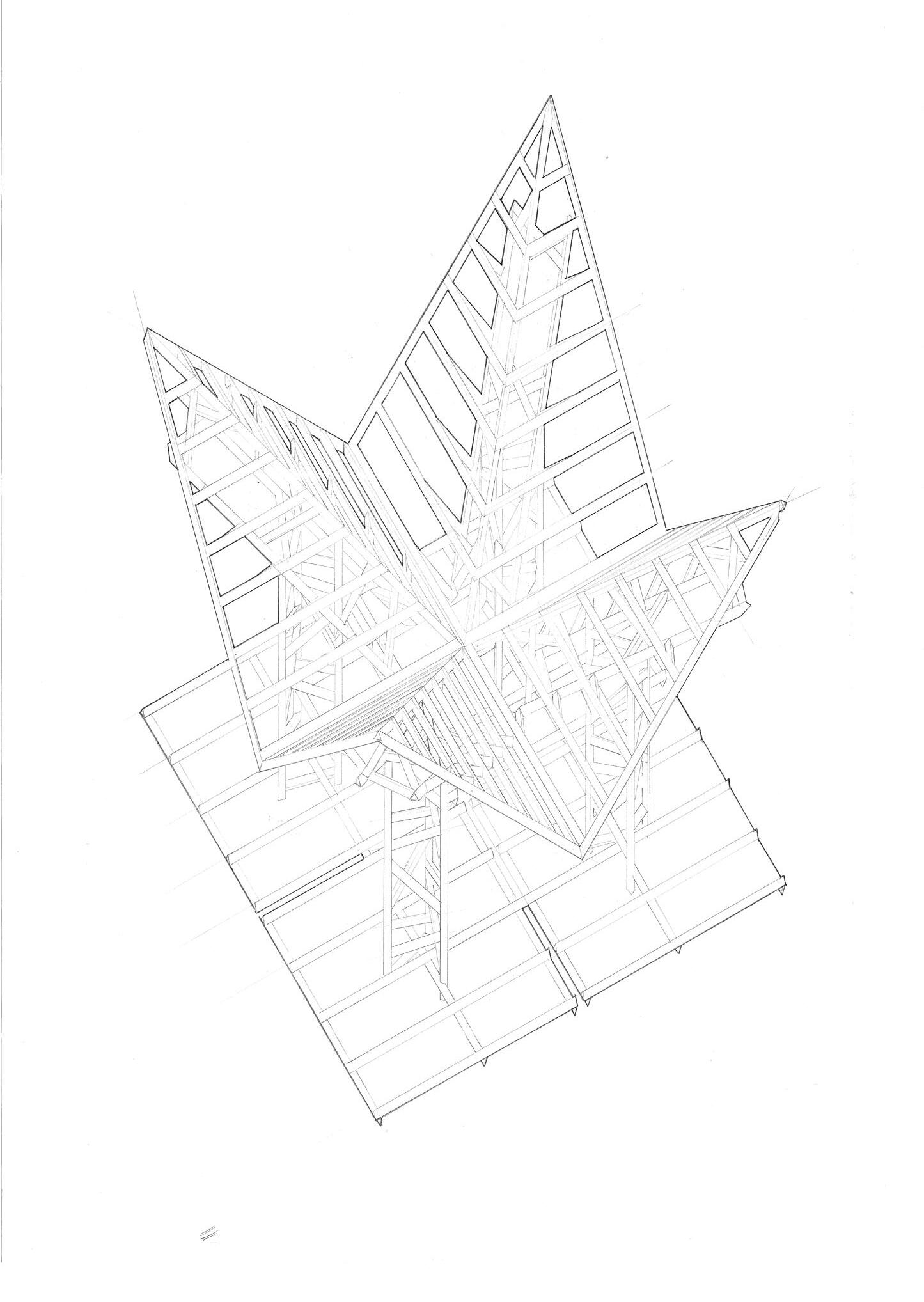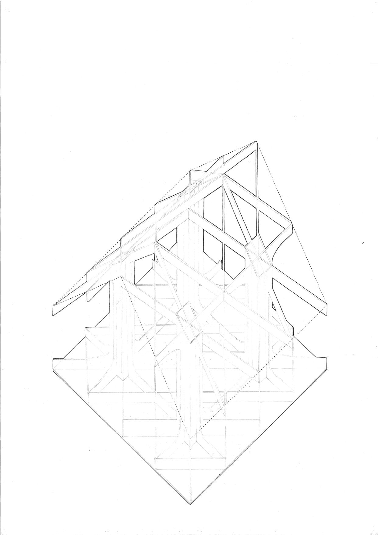 The method for this project involved a meticulous focus on rhobust structure by initially exploring ways to strengthen a simple cuboid volume. . As the number of volumes added up and the roof plane became pitched we started to take into account other concerns such as shelter and sunlight. However the main focus was always on the strength of the roof and how stable it could be. Efficiency was also another factor as we tried to reduced the amount of materials to what was absolutely necessary for our roof to stand firmly.