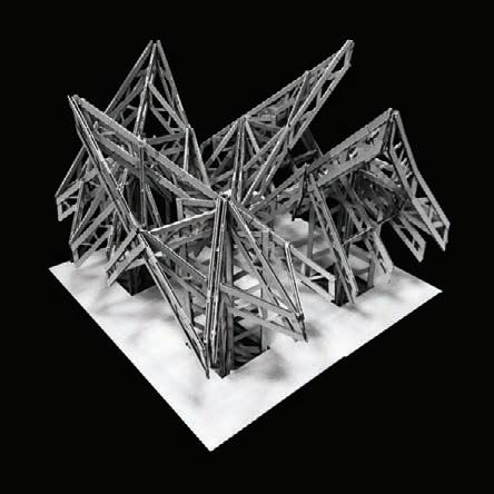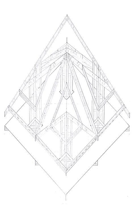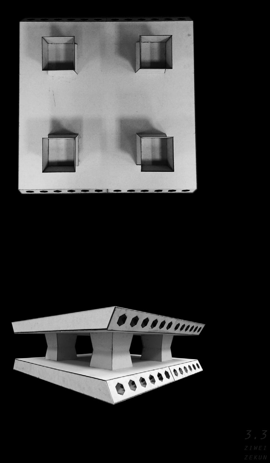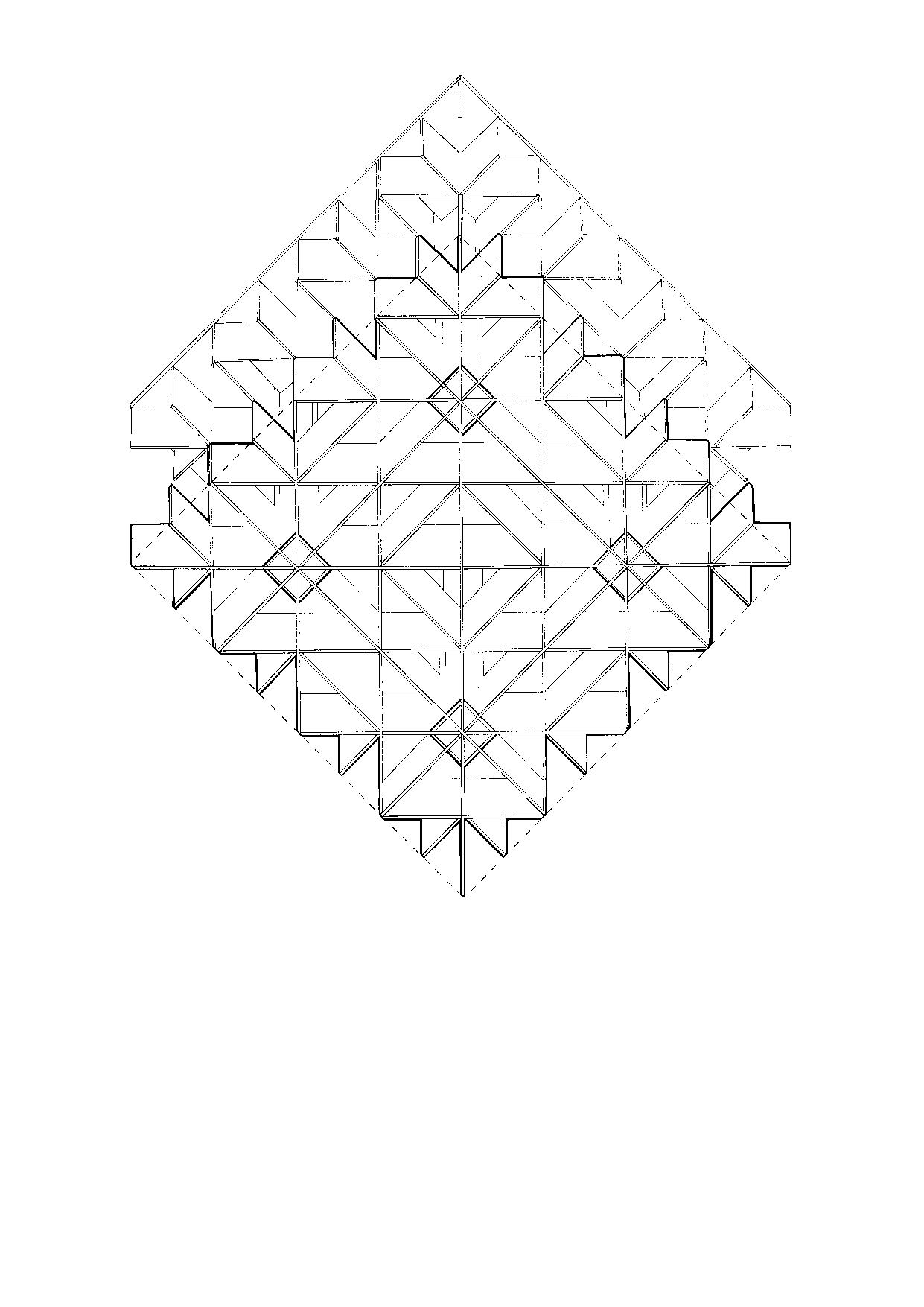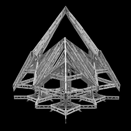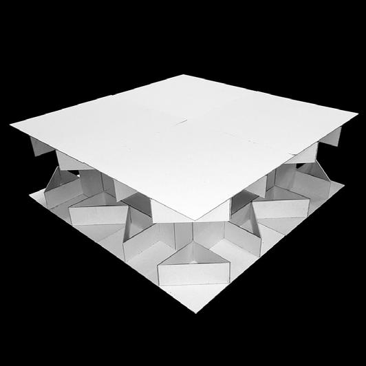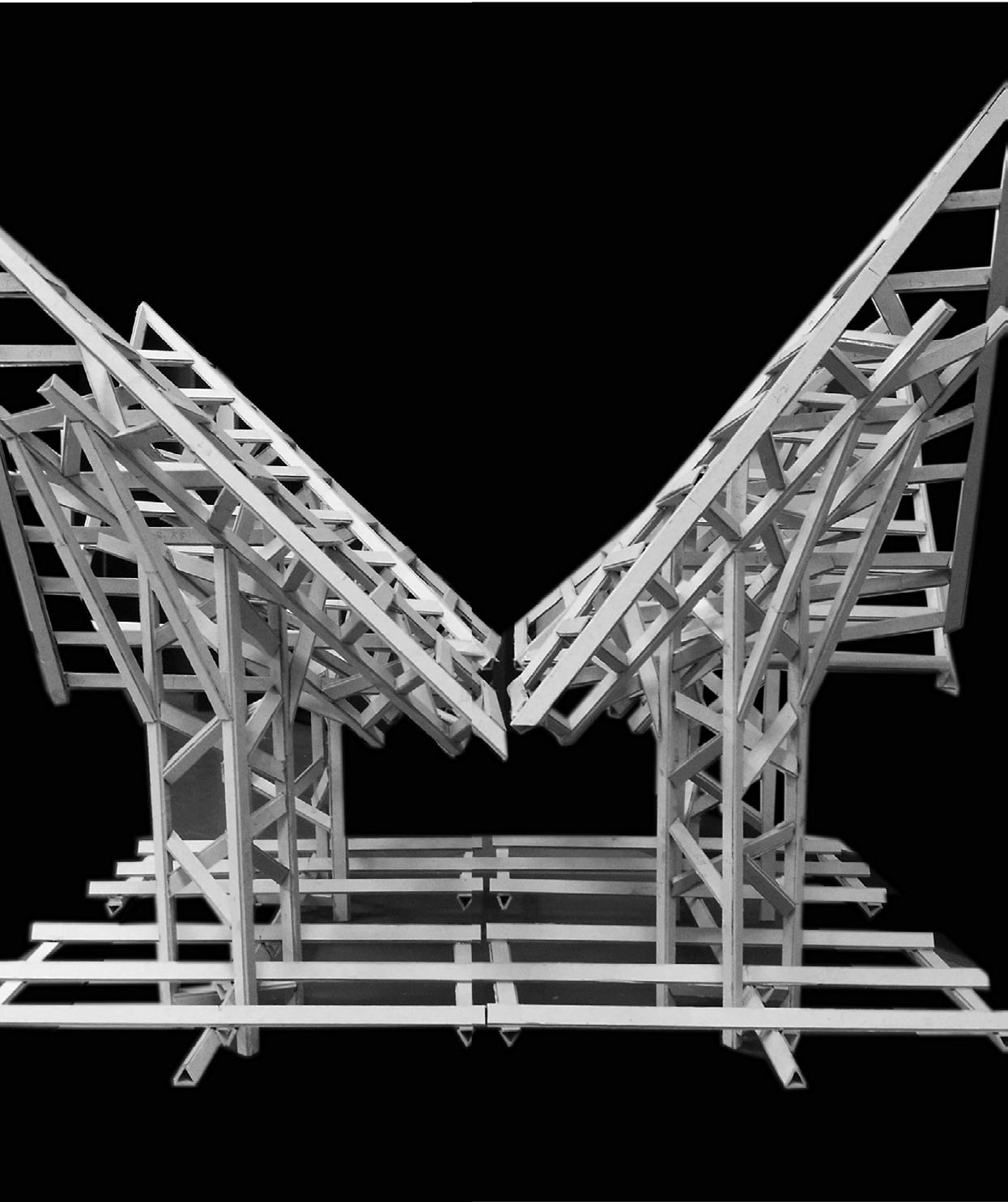 Structure hierarchy became a priority with the need of establishing primary, secondary and tertiary structures in our experiment in using planes. Using what we have learnt in this phase, we incorporate our structural folds into tubes following this structural hierarchy. In translating these structural tubes into timber construction, we designed slits where the timber planks can interlock and permutated to achieve continuous timber tubular beams that is showed structural rigidity in 3 axes as compared to planer rigidity of traditional construction of timber planks. We took advantage of this strength by greatly reducing the number of tuber beams required. As for the form, we wanted the form to reflect this lightweight configuration that we have achieved, thus we opted for an inverted pitch roof that allowed for large amount ambient light and wind into the structure. The result of our project is a new approach on how planar timber planks can be reconfigured into 3 -dimensional tube structures that proved to be more lightweight, simple, and yet equally robust compared to traditional construction of timber planks.