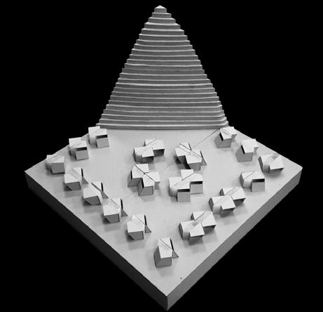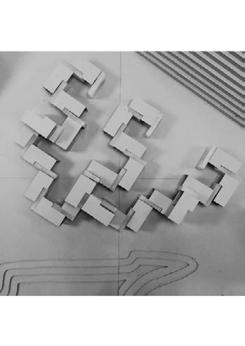 The openness of each unit created by the planar language, as well as the overall form created by the aggregation is such that each autonomous unit does not offer one comfortable isolation. Rather, one is given boundaries of personal space but frequently finds oneself confronted or in converstaion with the surrouding community or environment; one is always in reference and subject to larger elements. This project provokes discourse on what is a dwelling and how reductive can we be in designing one.