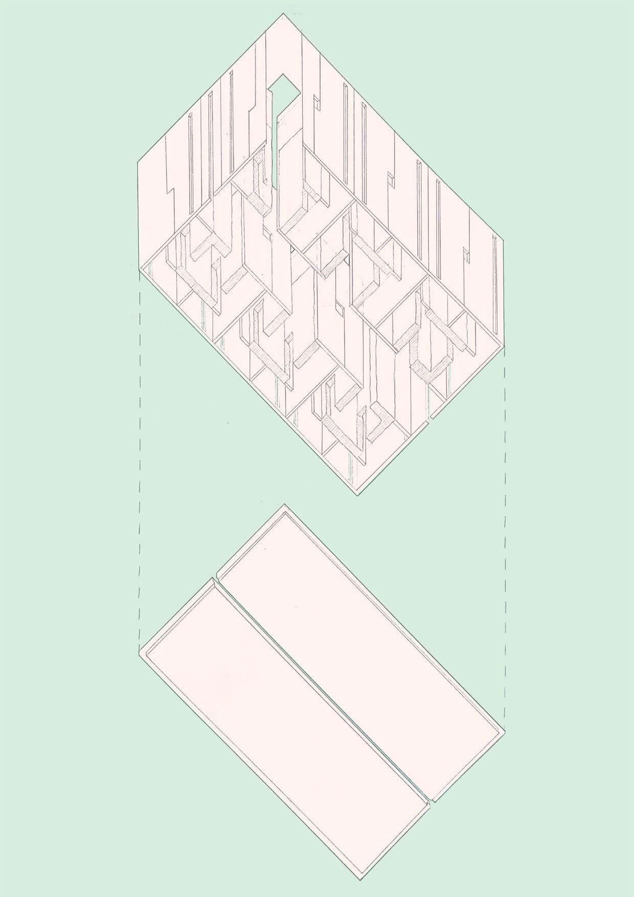Leaving any contextual knowledge of the site behind, the project started off with the exploration of modular aggregations using just two materials - greyboard and wax. To maximise the permutations of tessellation, each module comprised a L-shaped wax component, where they were then aggregated through interfacing the wax surfaces in different orientations. Architecturally, the material properties of the wax and greyboard were then translated into concrete and cross-laminated timber (CLT) respectively. The cast-in-situ concrete acts as a interconnected structural support system, which would then facilitate the construction of the CLT panels to accommodate for sleeping, cleaning and communal spaces.