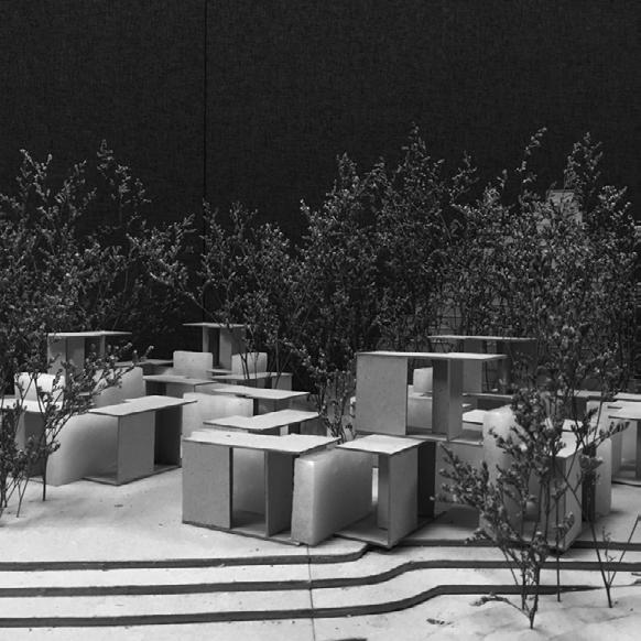 The assignment required the design of an eco-lodge situated in Dairy Farm to accomodate about 20 occupants, working with two main materials, cross laminated timber and concrete, represented by greyboard and wax respectively. The aim was also to understand the material qualities and fully utilize them in the design as CLT/greyboard was treated as a structural plane while concrete/wax was casted and carved. The units were explored with basic cells of diagonals within cuboids, which iterated and developed through adding and subtracting from the basic geometry.