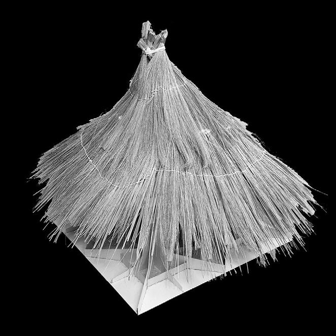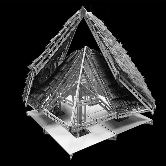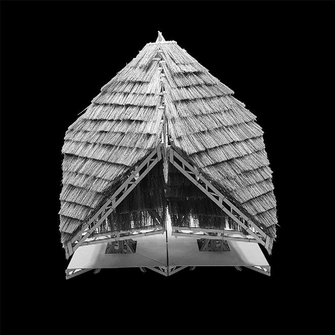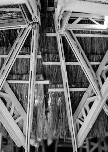 What we arrived at the end of the 4 weeks was a structure made from many small pieces of greyboard which mimic conventional spans of timbre and a tatched roof which provided a simple covering for our roofs. Thus we learned on a practical level what it takes to create a tropical roof that actually functions well.