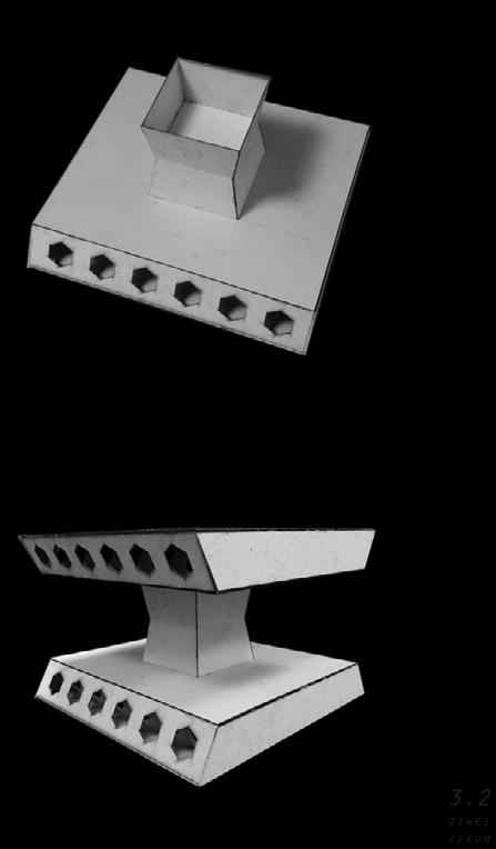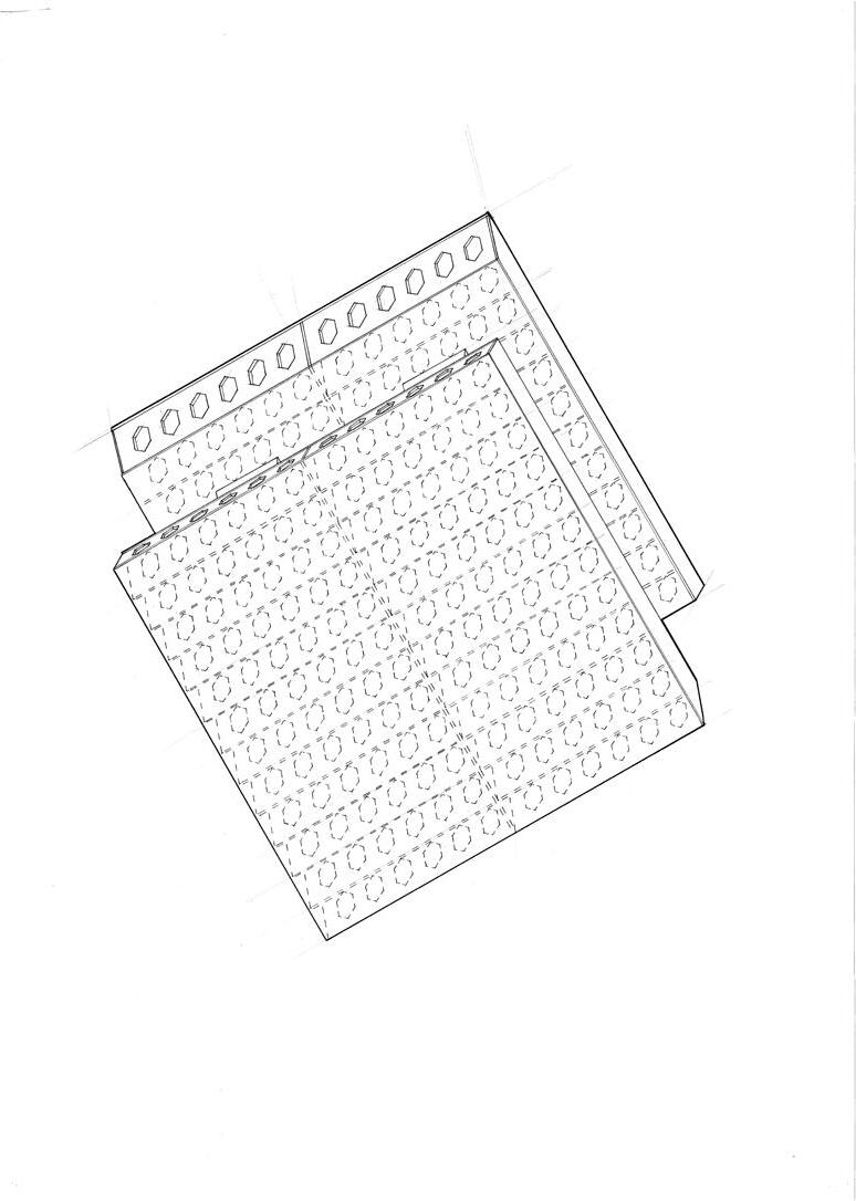 Through further probes in the project, there was need for structural efficiency and the use of less materials. We experimented in cutting out hexagonal holes in our structure to reduce weight. We felt that the hexagon was the best balance between structural rigidity and weight reduction. It was at this point that we felt that our method of corrugation was naturally dense despite weight reduction through holes. We needed to rethink on how we can take advantage of the structural properties of a fold.
