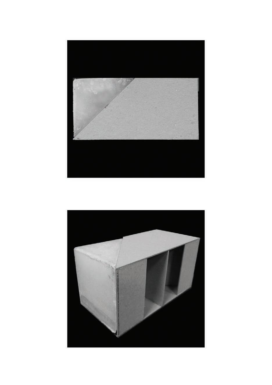 I named my project concrete envelope because it is made entirely from concrete. It uses two types of concrete in particular, pre-cast concrete and cast-in-situ concrete. The planar quality of the grey-board mimics pre-cast concrete and the use of formwork and carving is why I used wax to represent cast-in-situ concrete.