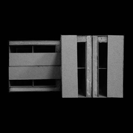 Delaying any explicit site response or design intention, the project started off as an exploration of modular aggregation, focusing on the devleopment of a language and following logic of its repetition. The two materials used were greyboard and parrafin wax, to represent materials of planar and volumetric qualities respectively, as well as different methods of production and construction. These considerations came to inform the design and programme of each material and overall dwelling. Greyboard was envisioned as cross-laminated timber (CLT) and casted parrafin wax was imagined to be cast-in-situ concrete or excavated rock from the quarry. Lastly, programmes were fitted into the inherent logic and spaces created by the modular aggregation.