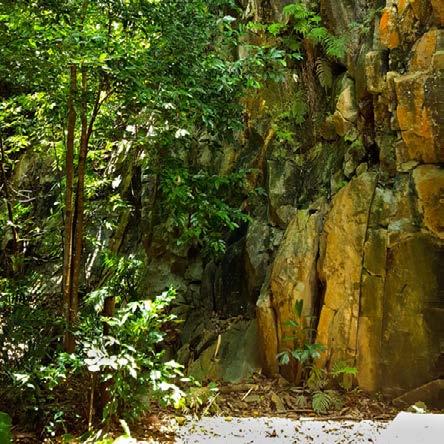 When one enters the Dairy Farm Quarry from either one of two narrow foot paths, one looks up from dim, leaf-covered dirt into an unending field - bright, green and luscious and isolated from the city scape by the quarry rocks that rise into the sky and undulate across the continuous and uninterrupted landscape.