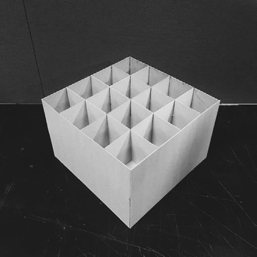 Our studio was restricted with only the use of grey board. And our first task was simply to build a box that does not flex. Although this task was seemingly simple, it was genuinely insightful as it forced us think how best to fully utilize grey board for a straight forward structure task. For my team, we have resorted to utilizing the monolithic properties of grey board through structural folds and corrugation.