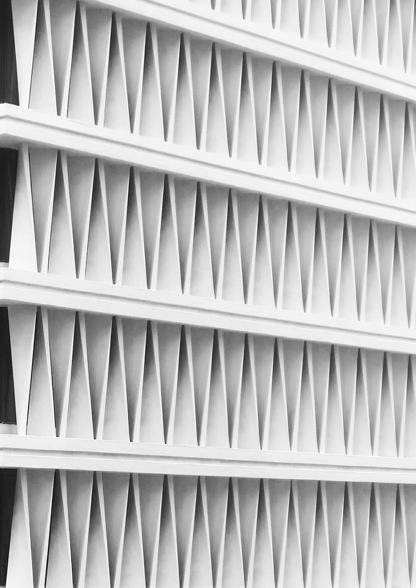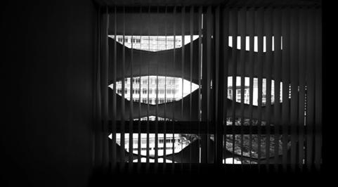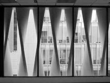 Apart from being a structural element, these twisted concrete mullions operate as sun-shading devices, allowing only 45% of the direct sun rays into the interior.