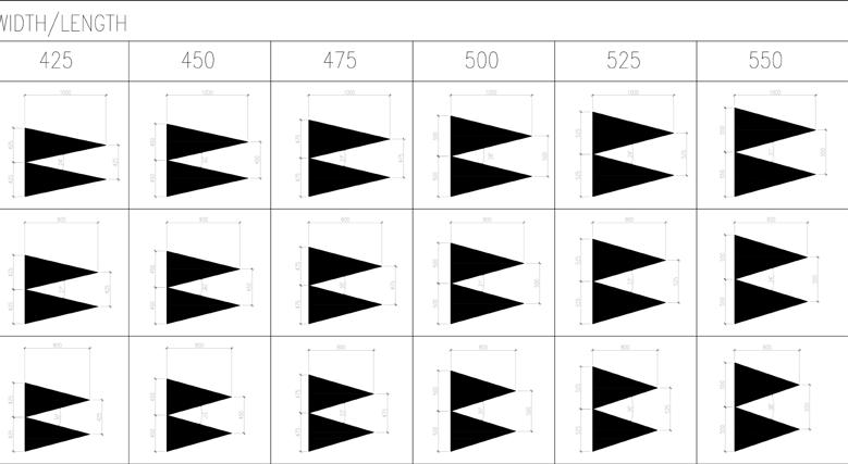 From the information I have gathered, what we can understand from the table below is that as the depth of each wedges increases, this would also increase the number of sound energy reflections too. The optimal opening for sound frequencies to travel through, ranges from 24 -30 degrees. By adopting a similar wedge concept found in the anechoic chamer, this act of sound blocking using the profile of the wedge would allow sound energy to bounce off each surfaces, thereby, significantly reducing sound transmission, before it actually gets into the building itself.