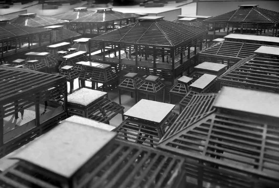 The previous market is a big roof project, which uses octagonal mushroom columns and overlapping roof to achieve natural ventilation and daylight. Without closed envelope, the original design not only presents typical tropical atmosphere of architecture, but also dilutes the boundary between seller and buyer, architecture and context, natural conditions and artificial environment. In this design, without high-technology and new materials, I want to bring back the vitality to traditional tropical market and create a new quality by break the concrete big roof into units and make structure thinner.