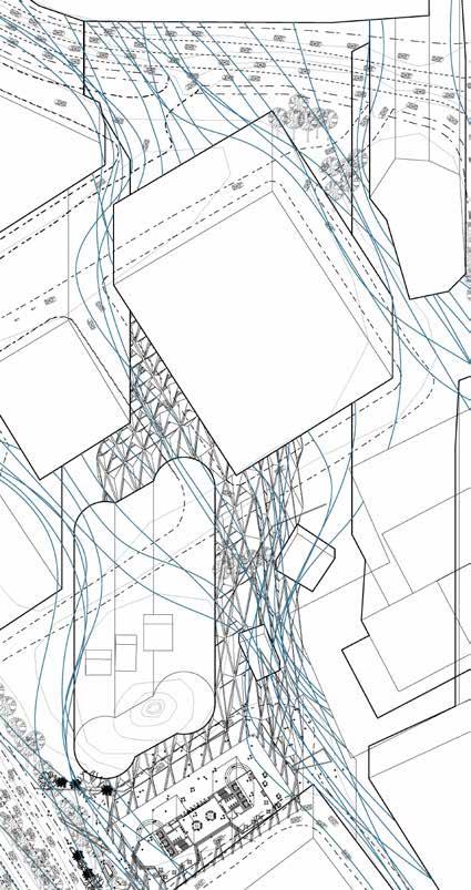 Our tower hence proposes the use of the medium of wind, to reimagine a new tropical office tower in the 21st century which engages the occupants with the qualities of air in relation to light, heat, sound and rain. Besides challenging the notion of an enclosed glass tower, the porous and naturally ventilated office tower within the equatorial city of Jakarta also attempts to be a counter narrative to the typical white-collar culture of that is associated with these towers as well.