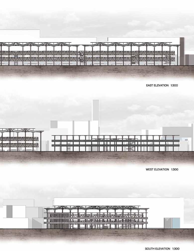 The series of louvres in the roof system allows for effective ventilation but at the same time allows for diffused light to enter to the interior spaces of the market. The tilt of the louvres also has rain mitigation purposes, allowing the interior spaces of the market to be weather proof and comfortable for the users.