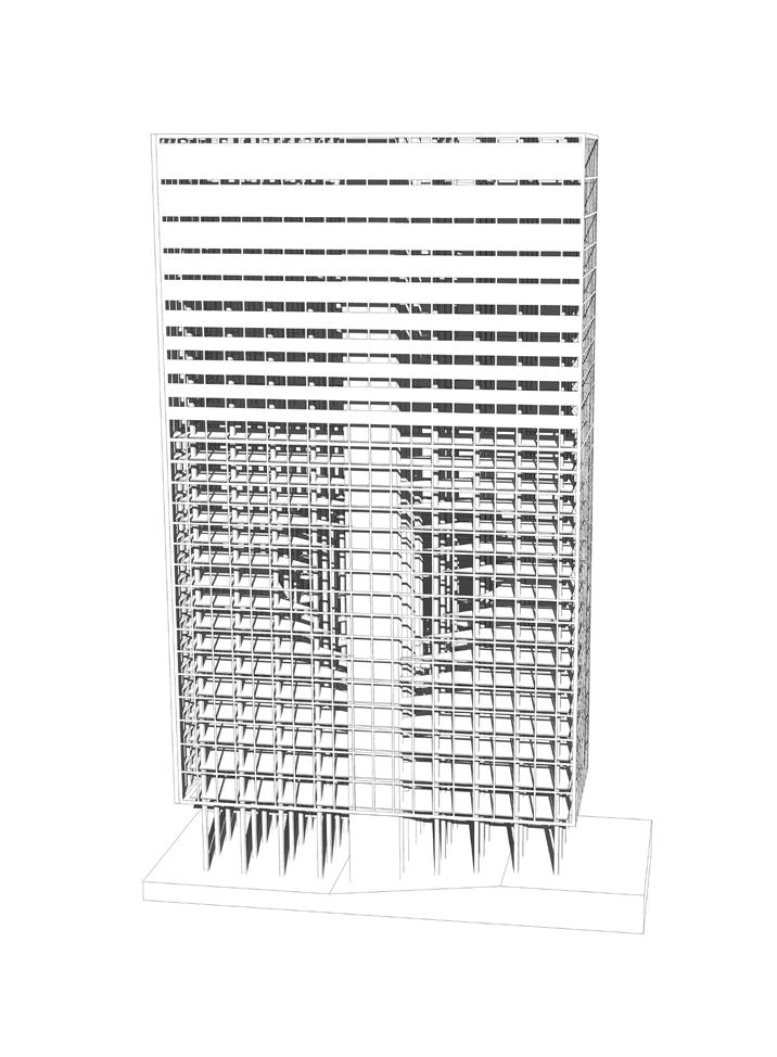 The tower uses its overall form and façade system to intensify or mitigate the varying wind conditions across the height of the tower. For the former, there is an outward kink in the middle of the tower so as to direct the wind downwards to the ground floor by creating eddies. As wind loads are huge on the long facades in the North-East façade, a skycourt is created behind the kink to allow wind to pass through and prevent stagnant air as well.