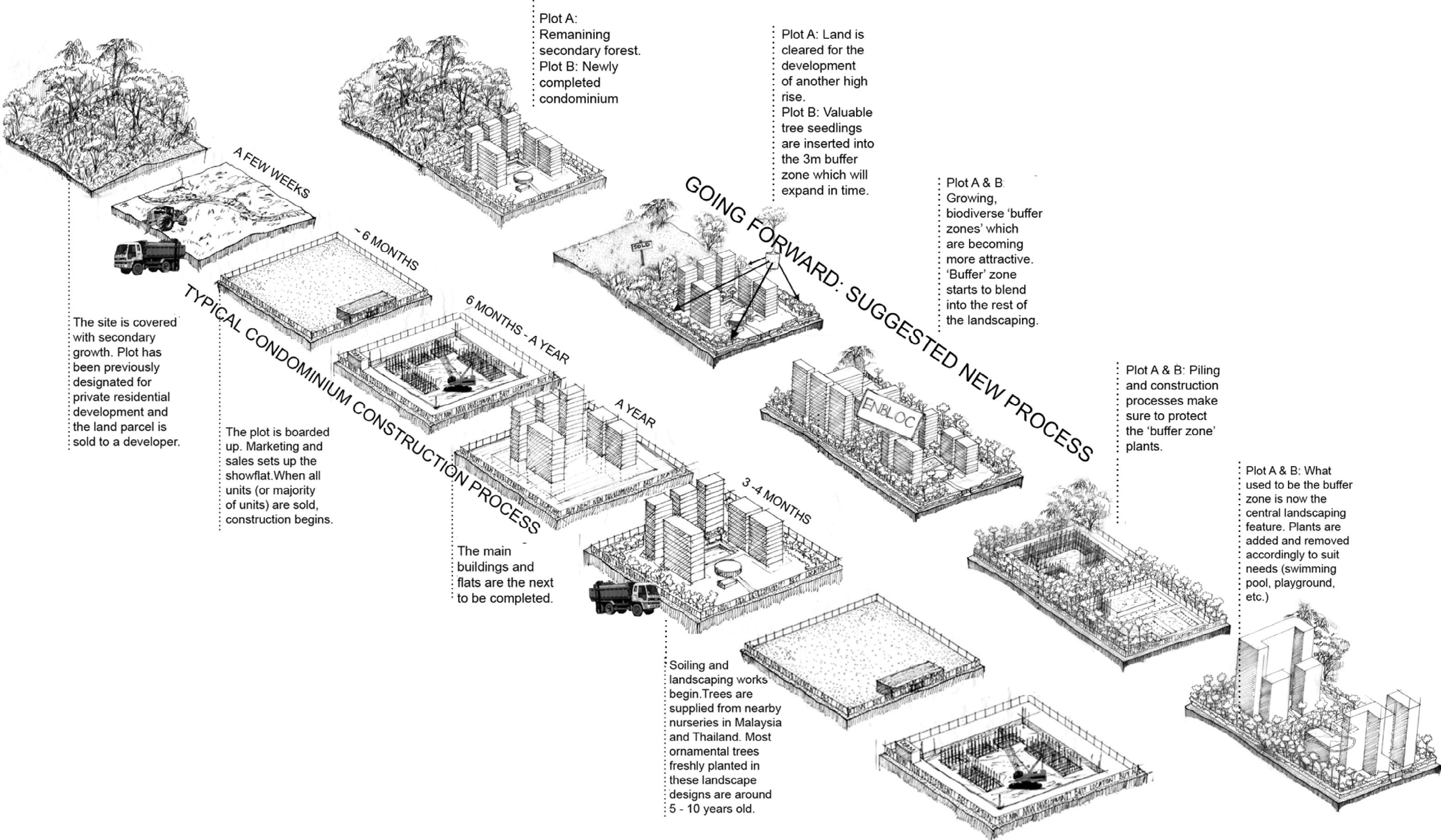Conventional real estate practice has always been to clear, build, and revegetate as an afterthought. This process of destruction as the first stroke of realised architecture concludes with the contrived returning of nature onto site by design and curation. Is there a way for the natural to be preserved throughout the seasons of real estate cycles, even becoming an asset? How can we begin to consider a harmonious and synchronised relationship between the urban and the natural?