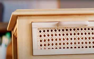 Añadir el cannage decorativo: lo cortamos a medida en función del mueble y lo fijamos a la madera con la ayuda de una grapadora.