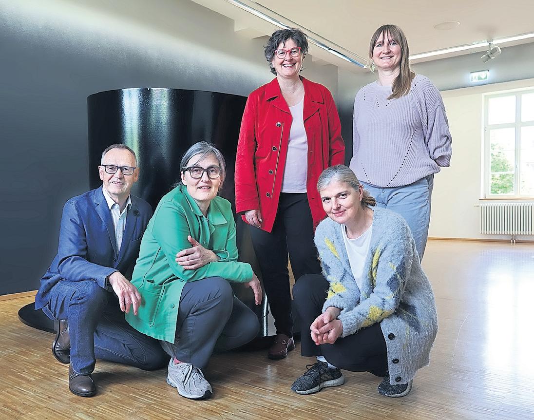 V.l. sitzend Axel Lotz, Vorsitzender des Förderkreises Kunst + Kultur, die Künstlerinnen Julia und Claudia Müller sowie stehend von links Kulturchefin Carmen Lötsch und Kuratorin Patricia Potrykus.