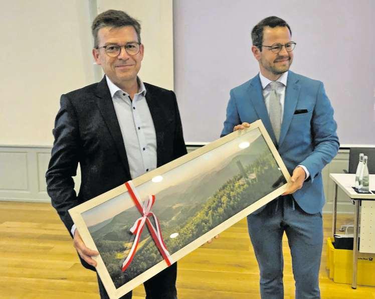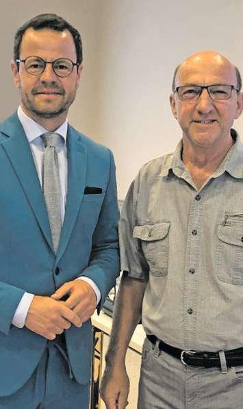 Abschied. Albert Glatt wurde von OB Marco Steffens als Stadtrat in der ersten Sitzung im umgestalteten Salmensaal verabschiedet. Neubeginn. Alois Späth folgt Albert Glatt nach. Fotos: Siefke