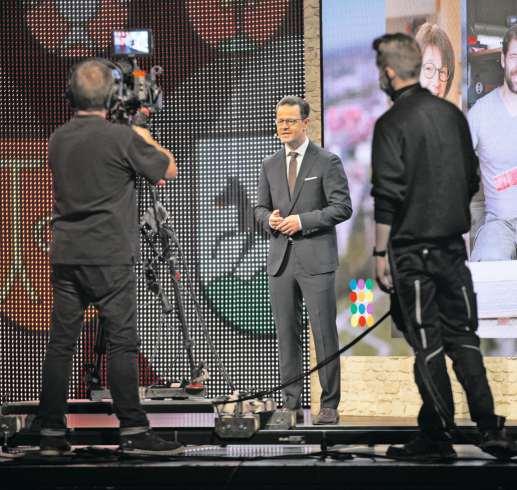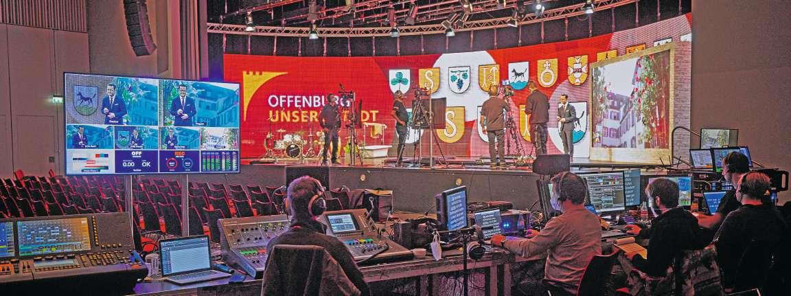 Studio-Atmosphäre. Wo sonst Gäste sitzen, war zum Neujahrsempfang in der Oberrheinhalle diesmal viel Technik aufgebaut. Fotos: Bode