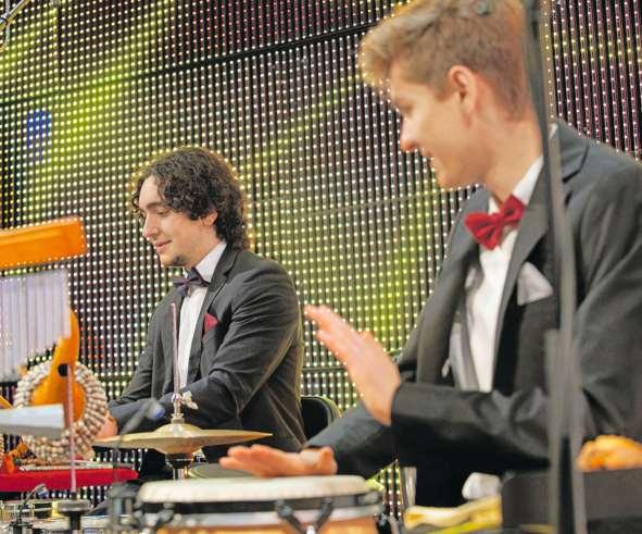 Klangteppich. Mit Wassertropfen und Badewanne. Percussion-Profis. Robin Stark (links) und Julian Schneider.