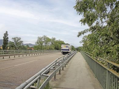 Das neue Bauwerk wird ebenfalls einen 2,50 Meter breiten Fußund Radweg erhalten. Die Arbeiten sollen im März 2024 beginnen, bis zur Fertigstellung im Dezember 2026 wird der Straßenverkehr für 22 Monate unterbrochen sein. Ein Großteil wird dann durch Hildboltsweier geführt.