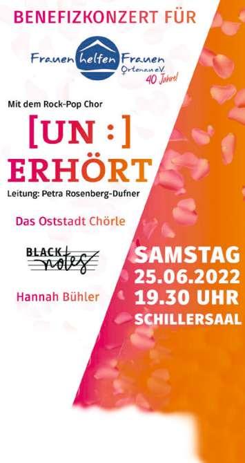 Benefizkonzert zugunsten des Vereins Frauen helfen Frauen Ortenau e.V. ZELLER STR. 33 / 77652 Offenburg Einlass ab 19 Uhr