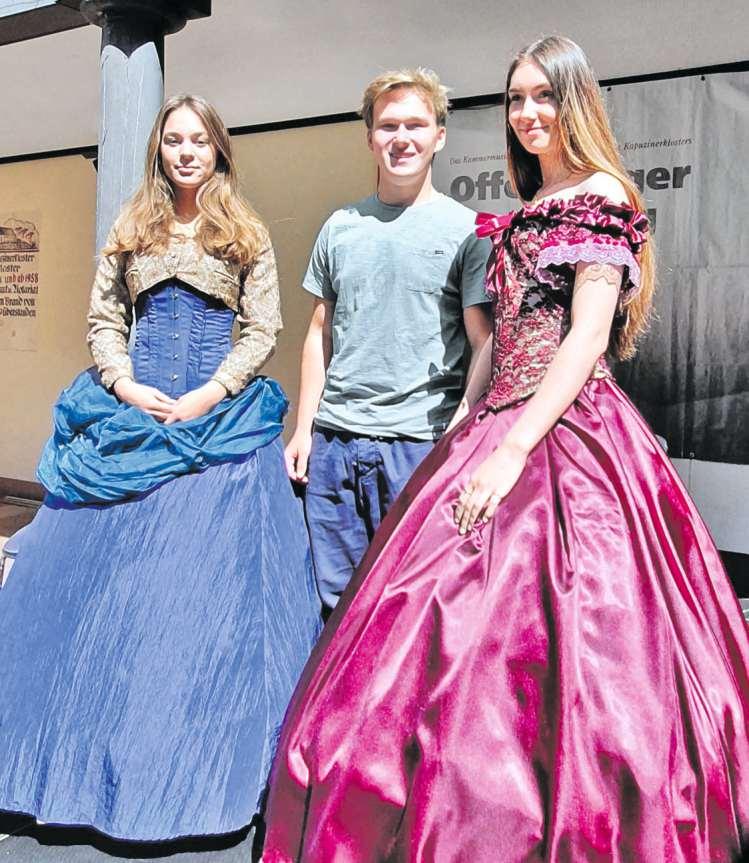 Irrungen und Wirrungen. Die Adelstochter Fanny von Schauenburg (Olivia Viviani, l.) liebt den Revolutionär Franz Volk (Lennard Kohlmann, M.) – sehr zum Missfallen ihrer Schwester Luise (Nele Fleig, r.). Und Offenburg befindet sich im Zentrum des Vormärz und der Revolution. Die Junge Theaterakademie Offenburg bringt ihr Erfolgsstück „Vision Freiheit“ jetzt im Rahmen der Heimattage erneut auf die Bühne, am 7., 8. und 9. Juli jeweils um 20 Uhr, im E-Werk-Zelt auf dem Kulturforum. Tickets gibt es im Bürgerbüro und unter www.reservix.de. Foto: Lötsch