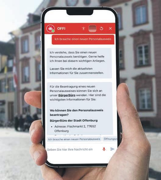 OFFI ist ein mehrsprachiger Chatbot der Stadt Offenburg, mit einem textbasierten Dialogsystem. In den vergangenen Monaten wurde er intensiv getestet und kontinuierlich weiterentwickelt. Die Rückmeldungen der Nutzer*innen sind durchweg positiv. Besonders geschätzt werden die schnelle Reaktionszeit und die einfache Bedienung des Chatbots. Auch die Stadtverwaltung zieht eine gute Bilanz: OFFI entlaste die Mitarbeitenden, indem er häufig gestellte Fragen automatisch beantworte.