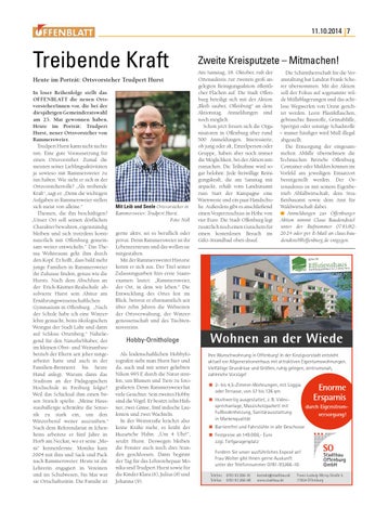 Treibende Kraft Heute im Porträt: Ortsvorsteher Trudpert Hurst In loser Reihenfolge stellt das OFFENBLATT die neuen Ortsvorsteher/innen vor, die bei der diesjährigen Gemeinderatswahl am 25. Mai gewonnen haben. Heute im Porträt: Trudpert Hurst, neuer Ortsvorsteher von Rammersweier. Trudpert Hurst kann nicht nichts tun. Eine gute Voraussetzung für einen Ortsvorsteher. Zumal die meisten seiner Lieblingsaktivitäten ja sowieso mit Rammersweier zu tun haben. Wie sieht er sich in der Ortsvorsteherrolle? „Als treibende Kraft“, sagt er. „Denn die wichtigen Aufgaben in Rammersweier stellen sich meist von alleine.“ Themen, die ihn beschäftigen? „Unser Ort soll seinen dörflichen Charakter bewahren, eigenständig bleiben und sich trotzdem kontinuierlich mit Offenburg gemeinsam weiter entwickeln.“ Das Thema Wohnraum geht ihm durch den Kopf. Er hofft, dass bald mehr junge Familien in Rammersweier ihr Zuhause finden, genau wie die Hursts. Nach dem Abschluss an der Erich-Kästner-Realschule absolvierte Hurst sein Abitur am Ernährungswissenschaftlichen Gymnasium in Offenburg. „Nach der Schule habe ich eine Winzerlehre gemacht, beim ökologischen Weingut der Stadt Lahr und dann auf Schloss Ortenberg.“ Naheliegend für den Naturliebhaber, der im kleinen Obst- und Weinanbaubetrieb der Eltern seit jeher mitgearbeitet hatte und auch in der Familien-Brennerei bis heute Hand anlegt. Warum dann das Studium an der Pädagogischen Hochschule in Freiburg folgte? Weil das Schicksal ihm einen bösen Streich spielte. „Meine Hausstauballergie schränkte die Sensorik zu stark ein, um den Winzerberuf weiter auszuüben.“ Nach dem Referendariat in Ichenheim arbeitete er fünf Jahre in Horb am Neckar, wo er seine „Moni“ kennenlernte. Monika kam 2004 mit ihm und Sack und Pack nach Rammersweier. Heute ist die Lehrerin engagiert in Vereinen und im Schulwesen, bis Mai war sie Ortschaftsrätin. Die Familie ist