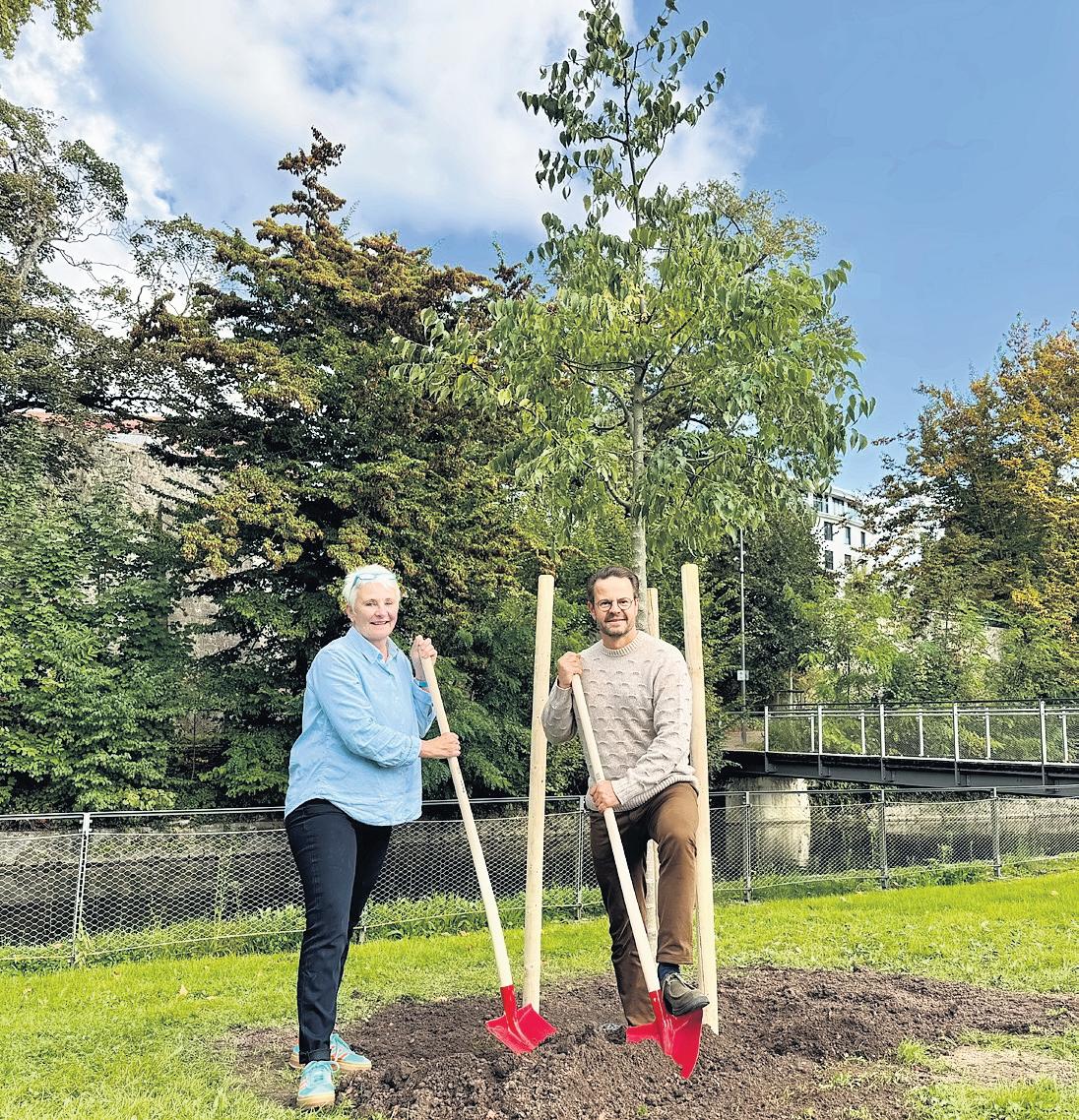Am Grünen Strand im Mühlbachareal haben OB Marco Steffens und LGS-Geschäftsführerin Jutta Herrmann-Burkart jetzt einen Europäischen Zürgelbaum gepflanzt: Der Standort liegt auf einem der Wege zur Landesgartenschau 2032. Die LGS Rottweil 2028 hat den Staffelstab an Offenburg weitergegeben – und von hier aus wird die LGS Rastatt 2036 nominiert. Bei dem Baum handelt es sich um einen trockenheitsverträglichen, großkronigen Laubbaum, der in südeuropäischen Städten schon weit verbreitet ist. Er trägt kleine süßlich schmeckende Steinfrüchte, die in Südtirol als „Zürgeln“ bekannt sind.