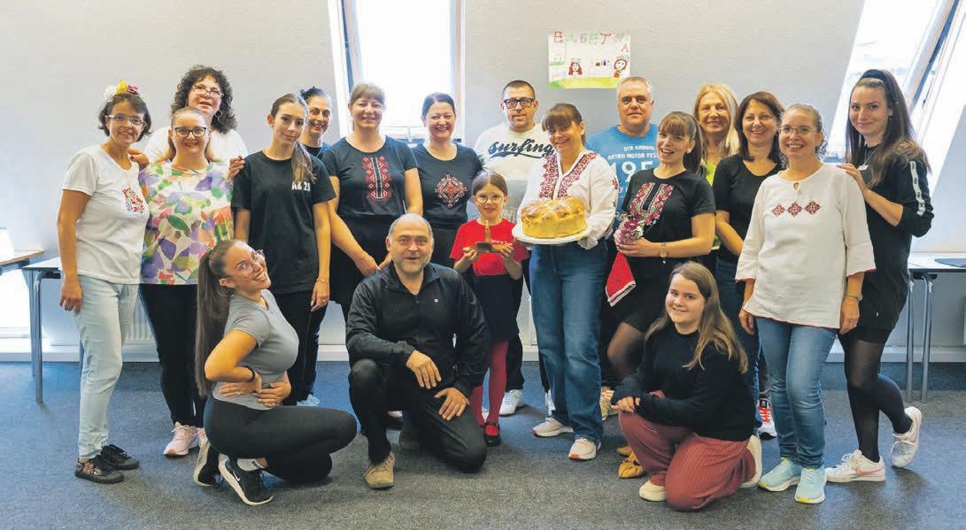 Symbol, dem doppelten Kreuz, das die Verbindung zwischen dem Irdischen und dem Himmlischen sowie den ewigen Kreislauf der Natur darstellen soll. „Die Folklore ist unsere Brücke zwischen den Generationen. In den Folklore-Tänzen finden wir unsere Identität und die Verbindung zu unseren Vorfahren“, so die Mitglieder der Gruppe. Proben finden sonntags im vierten Obergeschoss der Abteilung Bürgerschaftliches Engagement, Ehrenamt und Beratung, Marktplatz 5, statt: Anfänger*innen proben ab 13.30 Uhr, Fortgeschrittene ab 14.30 Uhr. Egal ob jung oder alt, ob bereits Berührung mit der bulgarischen Kultur oder nicht: Neue Tänzer*innen sind willkommen.
