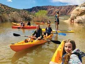 Just 10 minutes from St. George and 40 minutes from Zion National Park, is a secluded, local gem called Quail Creek Reservoir, inside Quail Creek State Park. One of two outstanding recreational lakes in Hurricane, Quail Creek’s unique geology is spectacular in the morning light, which reveals clear, calm waters, while setting sunlight showers the west-facing cliffs and hills in a predictable tangerine luminescence. Views of Pine Valley Mountain, Zion National Park, regional (extinct) volcanoes, and Arizona’s northern peaks may all be seen from inside Quail Creek State Park. Gate and park hours vary, based on time of year, so call or check online before traveling. Day-use parking fees range from $15-20 per vehicle, with senior and annual pass pricing available. There are tables and benches (available at no additional charge) throughout the shoreline between the two boat ramps, as well as a group campsite/pavilion, and a day-use picnic pavilion that may be reserved through the park. Overnight campers will find well-groomed sites with tables and clean common restrooms. Drinking water is available from hydrants dispersed throughout the grounds. Restrooms with running water are in the campsite, near the day-use pavilion, and by the north boat ramp parking area. Reservations are recommended. A vast array of activities lure recreational enthusiasts of all types. Swimmers love the wakeless zones, where motorized vehicles must slow to just a few miles per hour. Anglers lure rainbow trout, largemouth bass, smallmouth, crappie, bluegill, and bullhead catfish to their buckets (some prefer catch-andrelease over fish tacos). Kayaking, stand-up paddleboarding, and canoeing are great ways to explore the varied shoreline at a slower, more engaged pace as they probe limestone coves and cliffs and float the cottonwood tree-lined creek from early Spring to mid-Summer. Bring your own paddle craft or rent on site. Guided paddling, SUP yoga, petroglyph hiking, and fishing tours are available by appointment. Motorized boating is easy with two boat ramps. Wakeboard, wake surf, water ski. Bring your own or take advantage of the on-site jet ski and boat rental options, with availability and hours varying by season. Mountain biking and hiking trails ring the lake. There are over 25 miles of trail that ring Quail Creek State Park ranging from beginner to intermediate in difficulty level. Quail Creek State Park was built alongside an ancient Native American trailway. A free interpretive trail inside the park, near the north ramparea rental office, displays several authentic examples of native rock art, some as old as 5,000 years. Take pictures, and don’t touch the art; oils from hands deteriorate the rock and art. Birders will find a full complement of duck, goose, cormorant, tern, avocet, stilt, sandpiper, great blue heron, night heron, osprey, bald eagle, great horned owl, golden eagle, California gull, Franklin’s gull, white-faced ibis, yellow warbler, hummingbird, American pelican, and many more species. Observation areas on the west side are easy to access by car, while those looking for a more intimate experience may choose to paddle or boat to the far side of the lake. One of Hurricane’s outdoor gems, Quail Creek Reservoir does not disappoint.