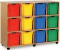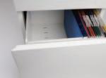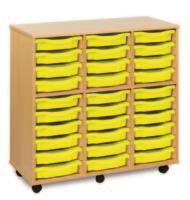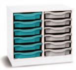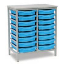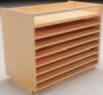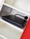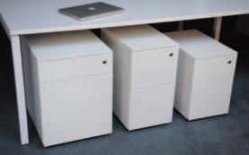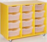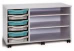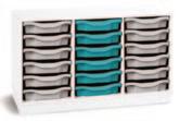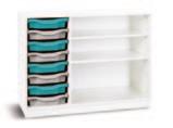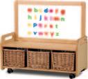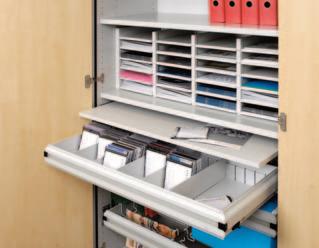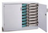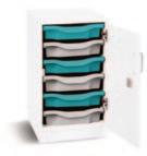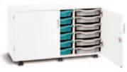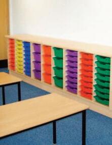 Why not look at purpose built storage that fits your space – this could be floor to ceiling, could incorporate media, have drywipe surface across the entire wall and even store all your storage trays.