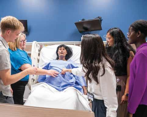 The Center features 24 exam rooms, eight highfidelity hospital rooms, a health assessment lab and multiple skills labs with virtual reality capabilities. Lifelike manikins and standardized patient actors simulate real-world health care scenarios to prepare students for today’s complex and collaborative health care environment.