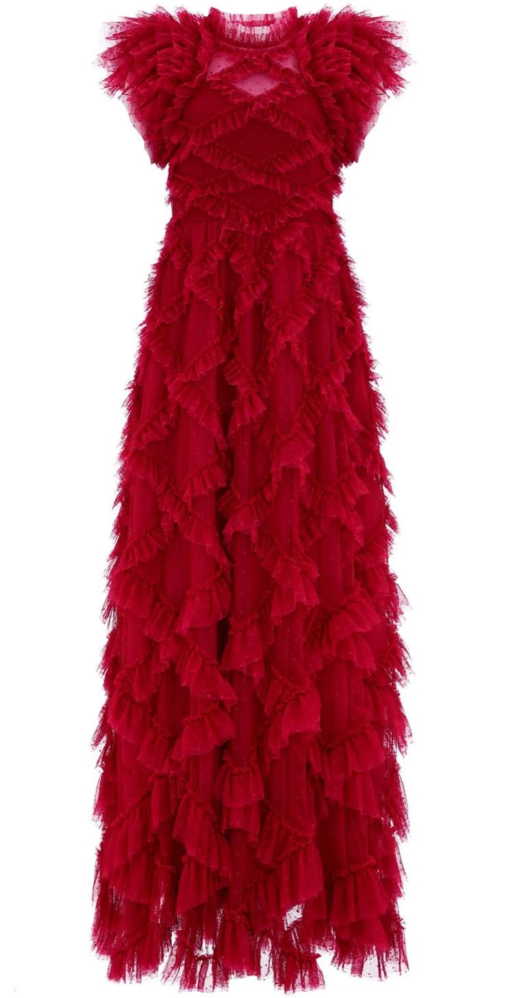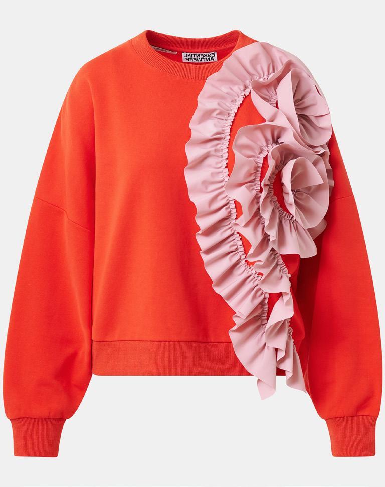 Essentiel Antwerp Red Cotton-Blend Sweatshirt with Ruffle Details