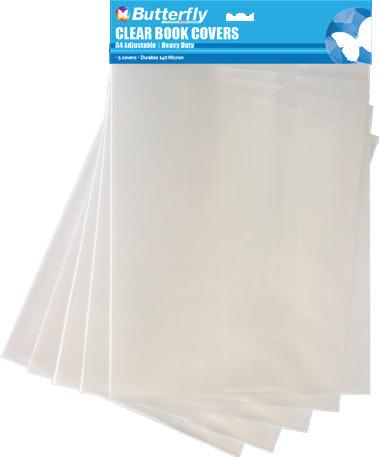 MEECO - ADJUSTABLE POLYPROP BOOK COVERS BUTTERFLY - ADJUSTABLE PLASTIC BOOK COVERS MEECO - FITTED BOOK COVERS A B C D E