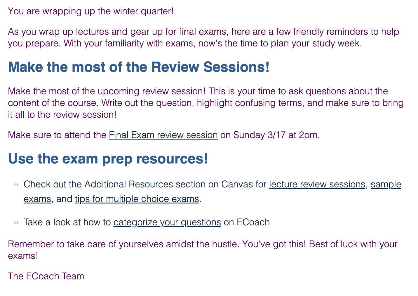 • Collaborative Academic Advising and Targeted Support offered by the College of Letters and Science, the Educational Opportunity Program, and the Undergraduate Learning Assistants (ULAs) to help students master complex material.