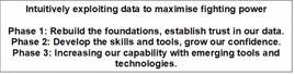 “the MOBILISE ‘fight tonight’ problem is not about waiting for an amazing ‘solve everything’ solution; it is a whole force, ongoing, dataimprovement task which we all own. Collaboration and transparency, so we can secure and scale our innovation, are really important, hence this editorial! Some of what we do is highly technical ‘1s and 0s’; most of our work today though is about fostering an attitude of being ready to apply core engineering skills to understand data exploitation for real battlefield and ‘under the hood’ benefit.”